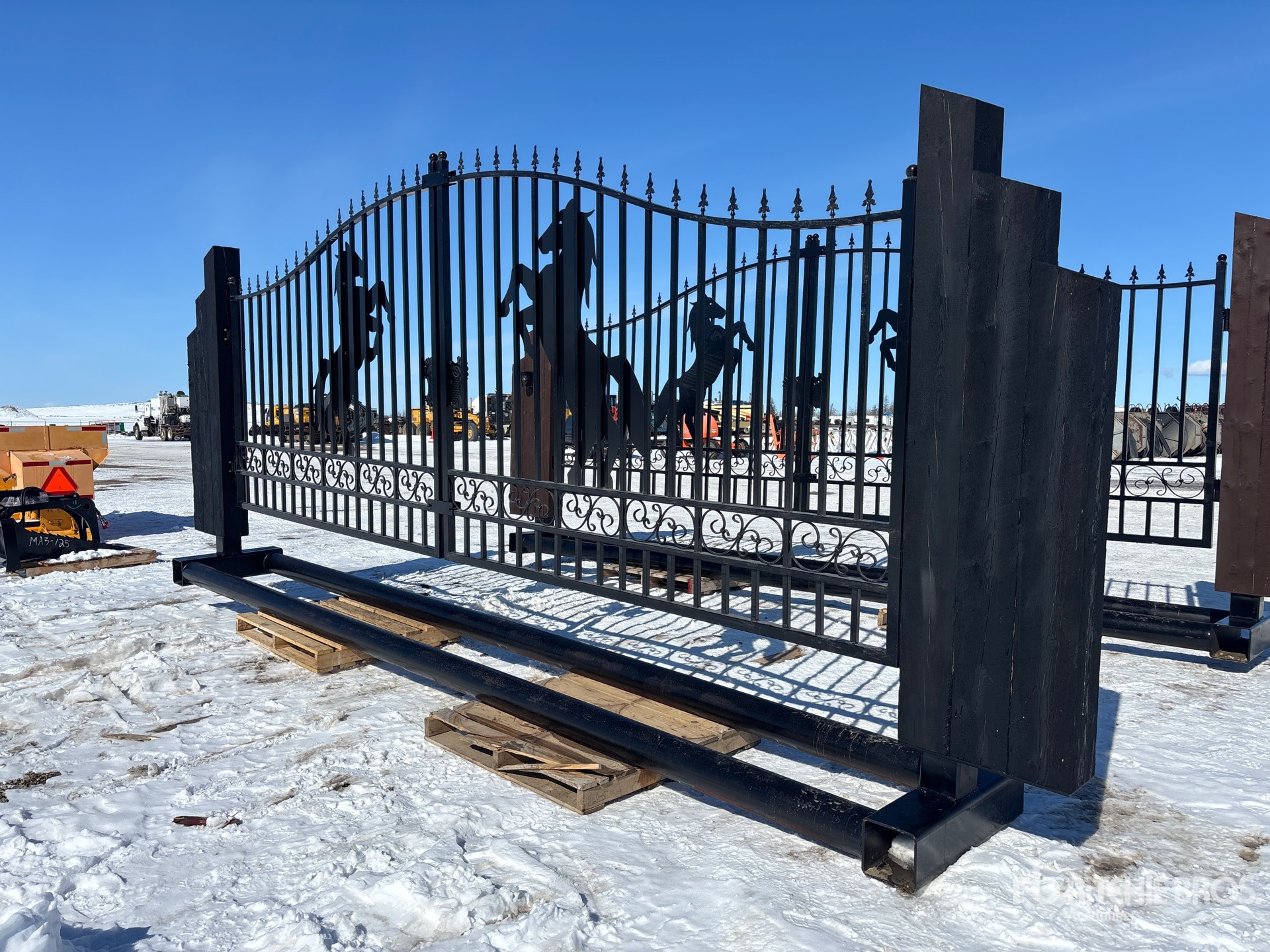 18 ft 8 in Opening, 6 in Pipe Buried Frame, Solar Powered Dual Arm Automatic Gate Openers, Solar LED Lights, Solar Panel, Remote Control