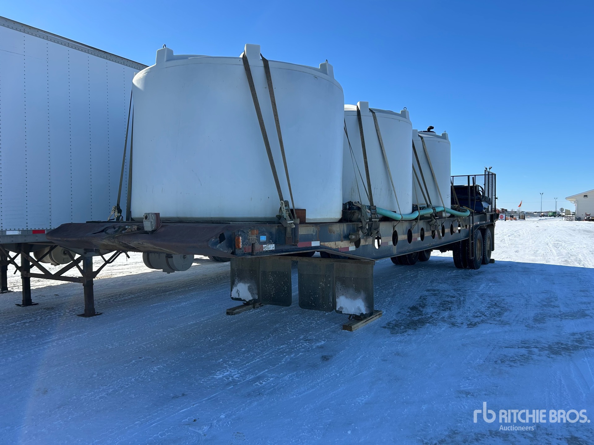 (3) 1600 (4) gal Poly Water Tanks, Honda Water Pump, Chem Handler, Storage Cage