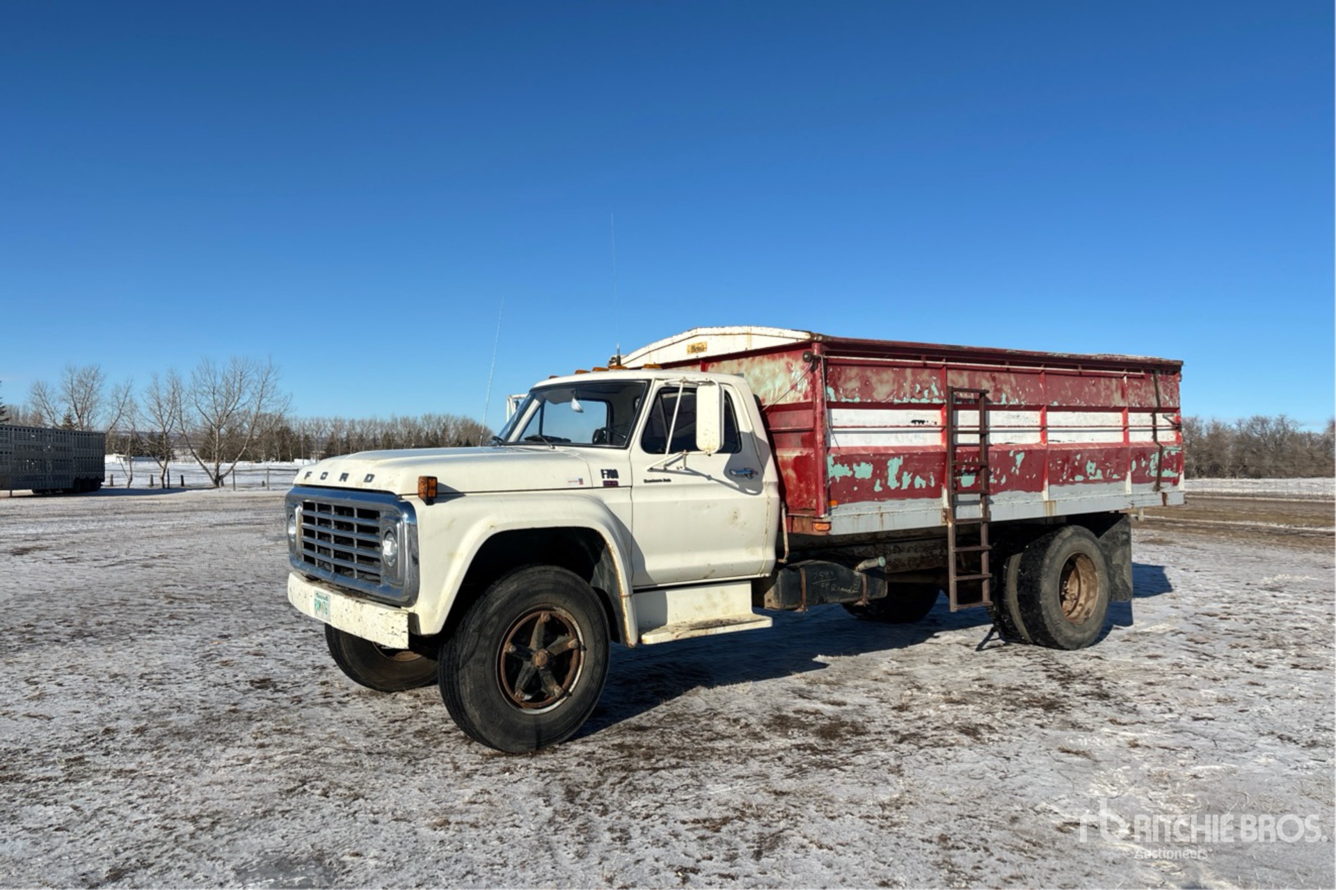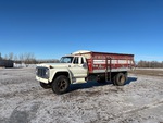 Ford 370-2V V8 6.1 L Gasoline Engine, 5-Speed Manual Transmission, 2-Speed Auxiliary Transmission, 23000 lb GVWR, 11R22.5, Spring Suspension, 194 in Wheelbase, PTO, 15 ft Long x 3 ft 18 in High Steel Body, Manual Roll Tarp