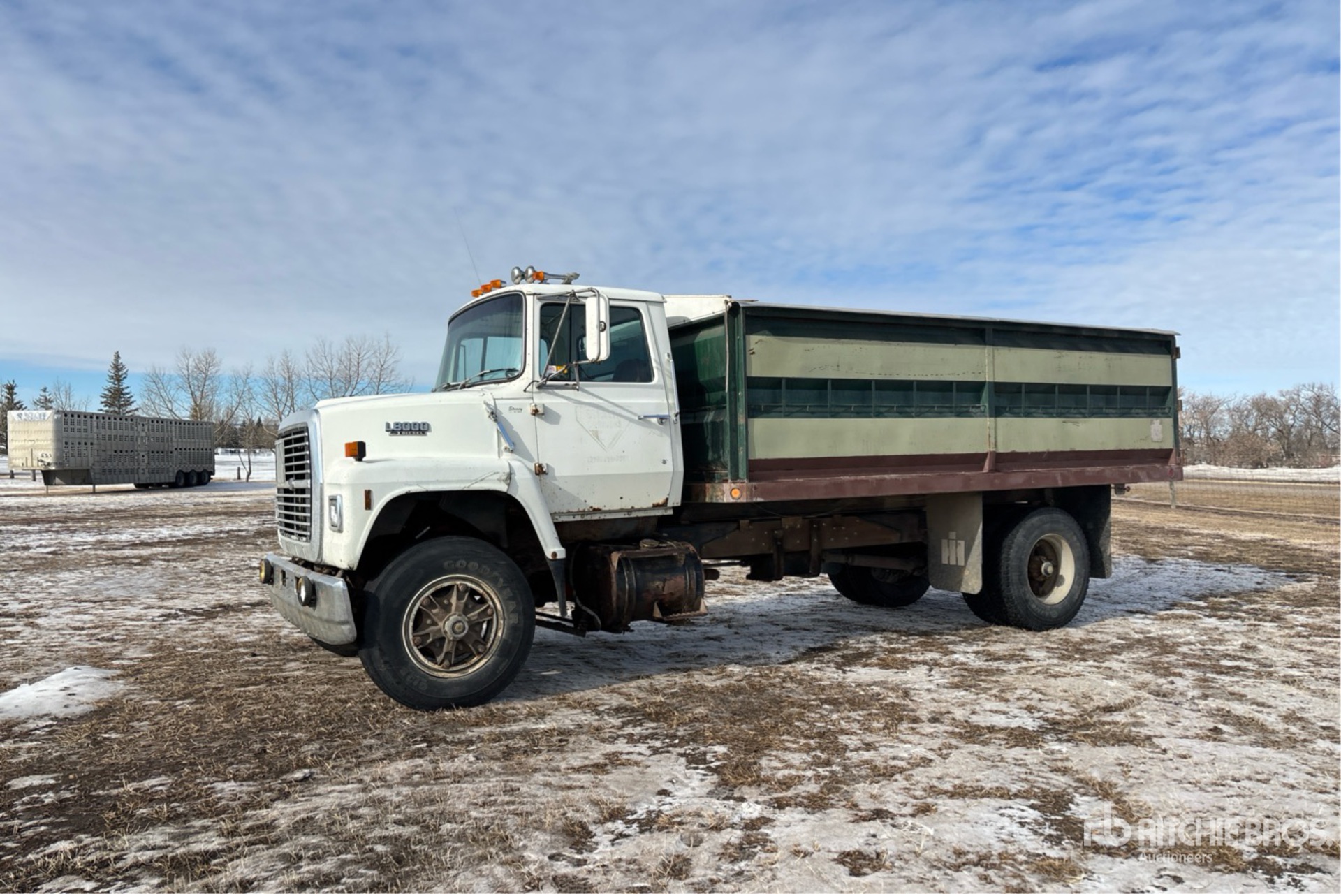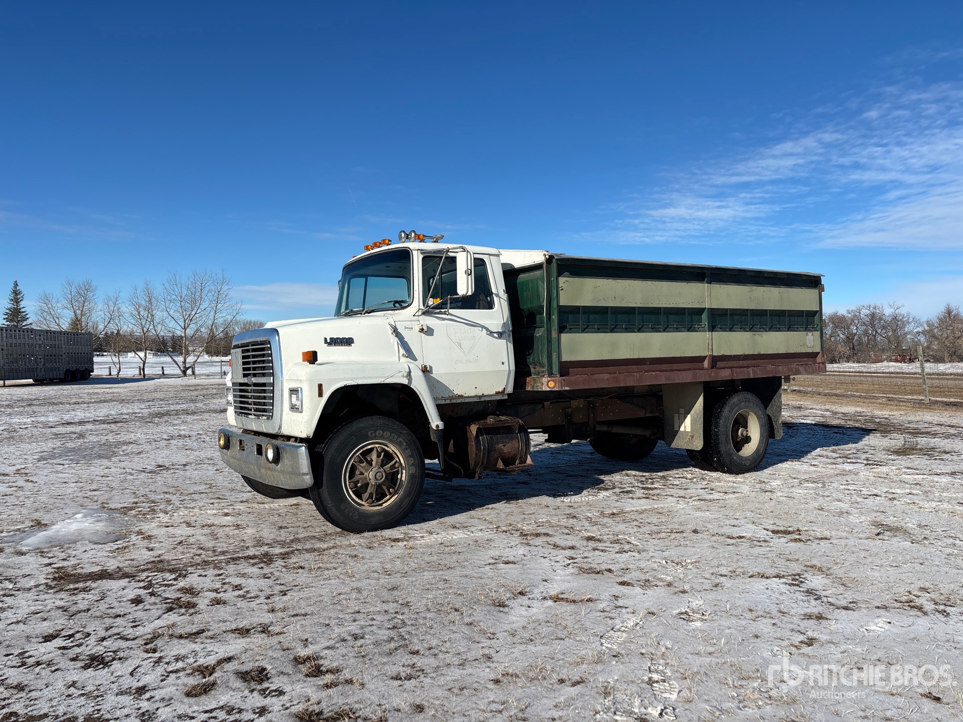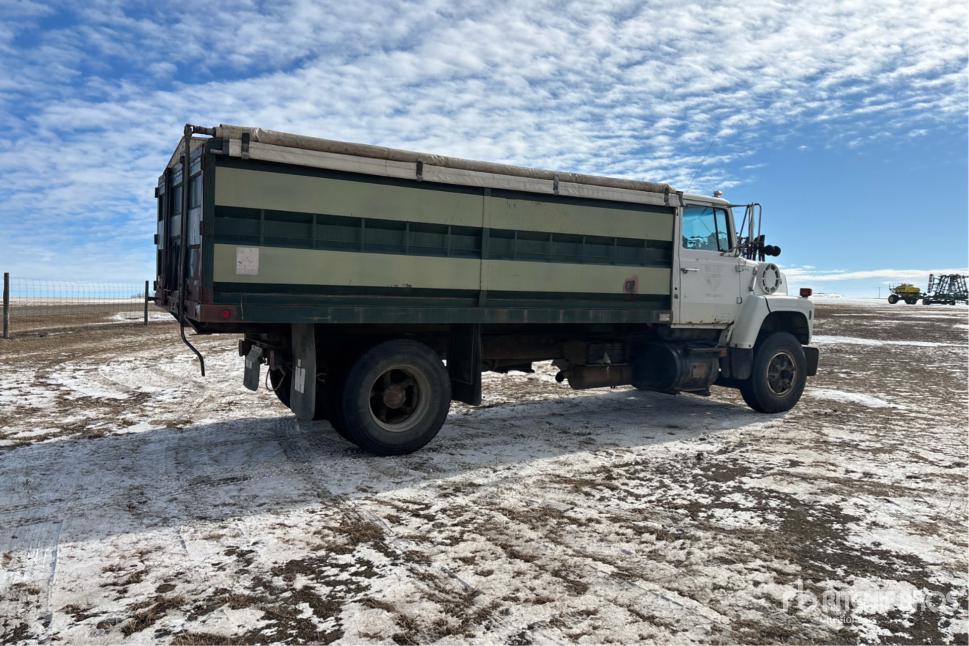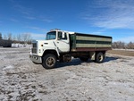 Ford 6 Cylinder 7.8 L Diesel 210 hp Engine, 6-Speed Manual Transmission, 7390 lb Front Axle, 5440 lb Rears, 11R22.5, Spring Suspension, 202 in Wheelbase, PTO, The Strong Box 16 ft Long x 4 ft High Steel Body, Manual Roll Tarp, Rear Hoist Control