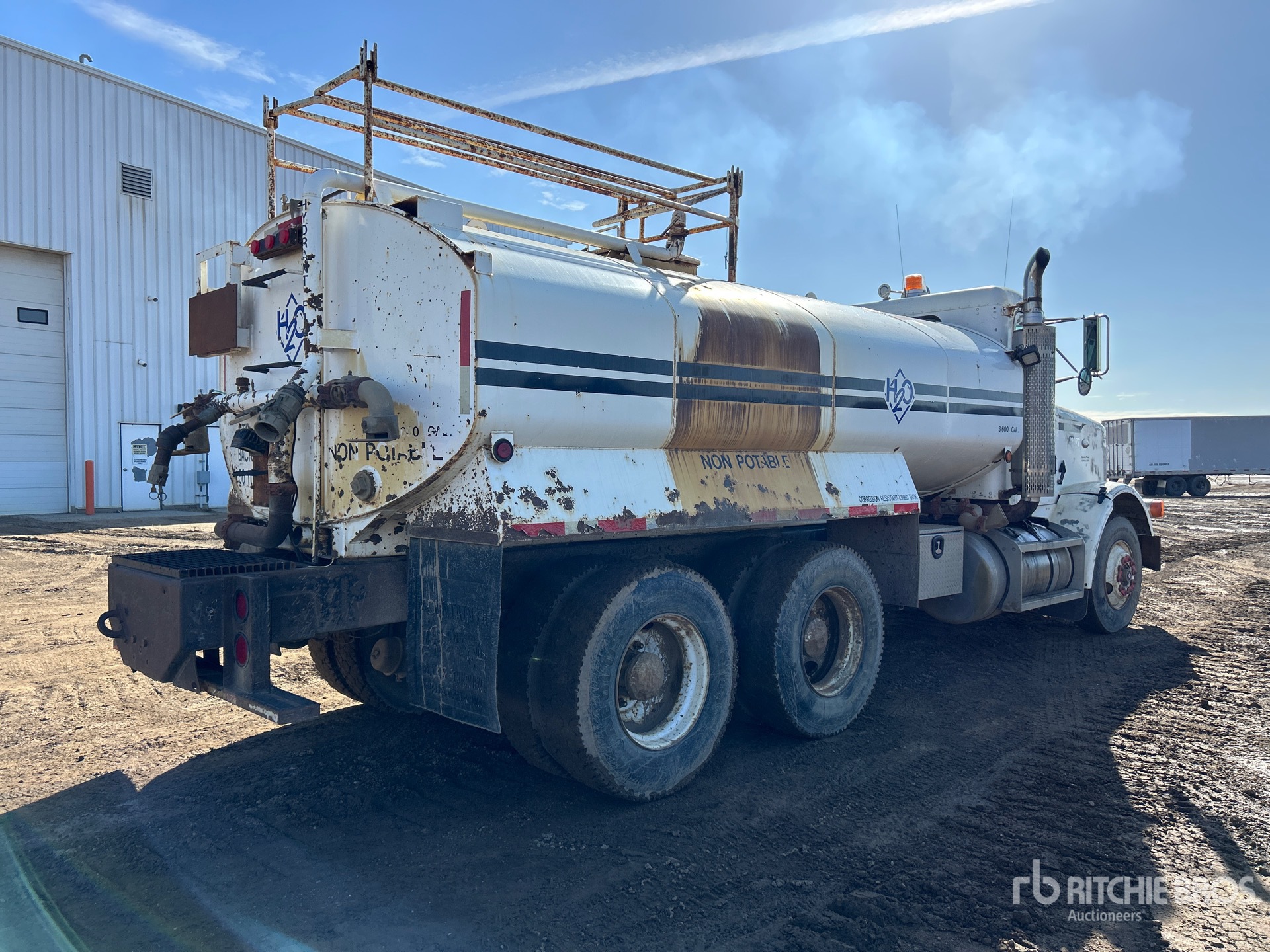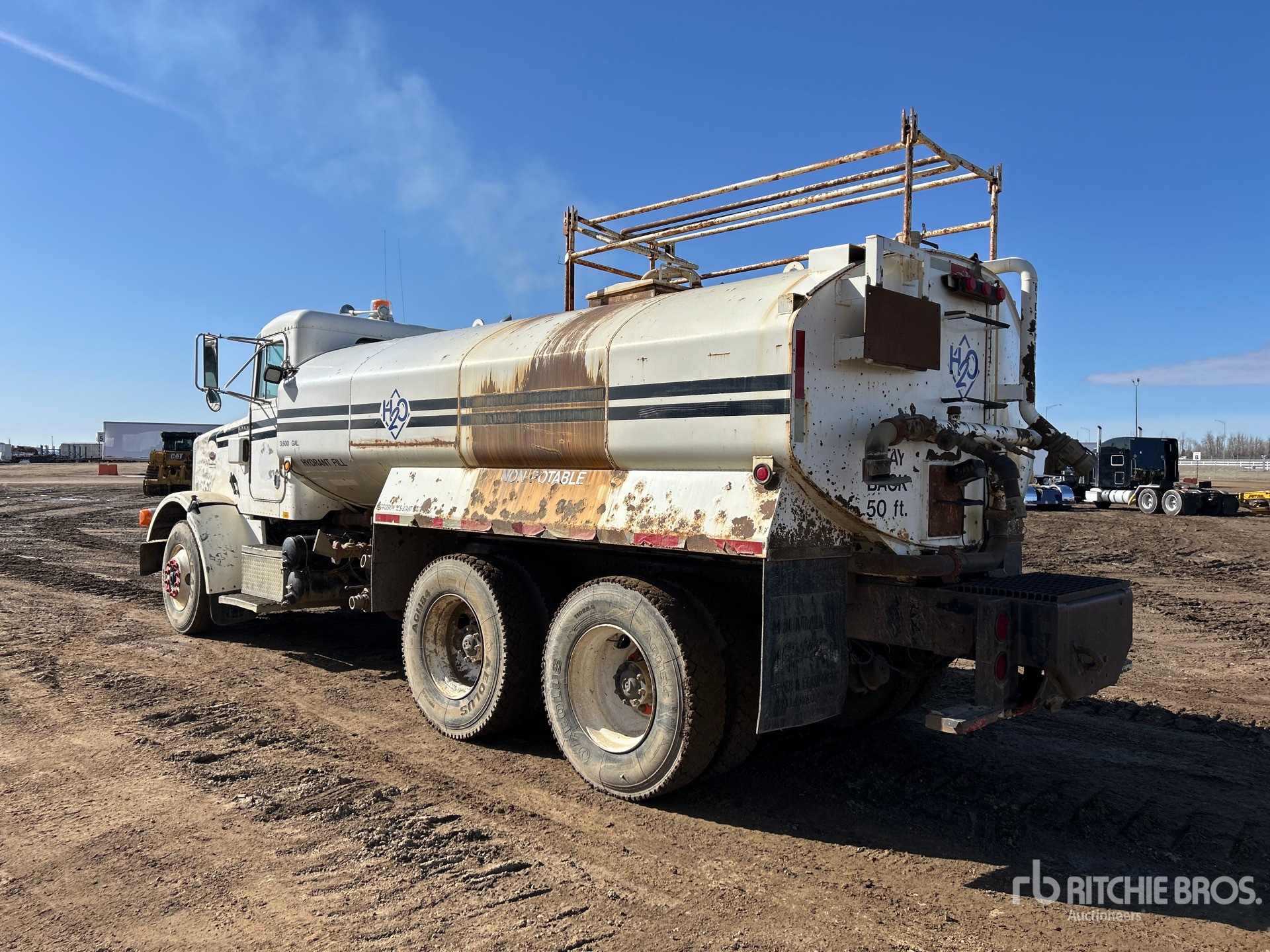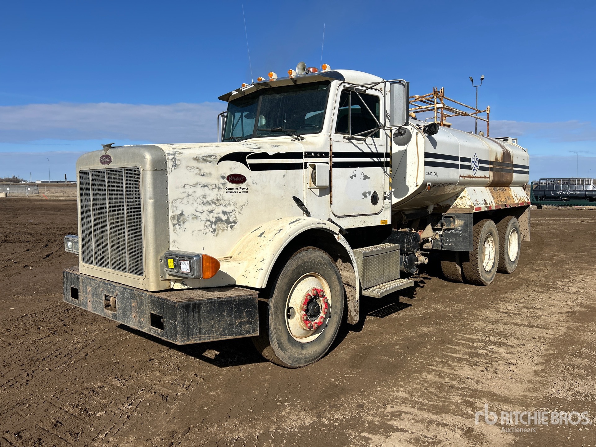 Cummins 6 Cylinder 14 L Diesel 315 hp Engine, 1988 US EPA Label, 7346 Engine hrs, Engine Brake, Manual Transmission, 12000 lb Front Axle, 38000 lb Rears, 50000 lb GVWR, 11R22.5, 200 in Wheelbase, PTO, 3600 gal Steel Tank, Tank Lining, PTO Driven Pump, Rear Spray, Side Spray