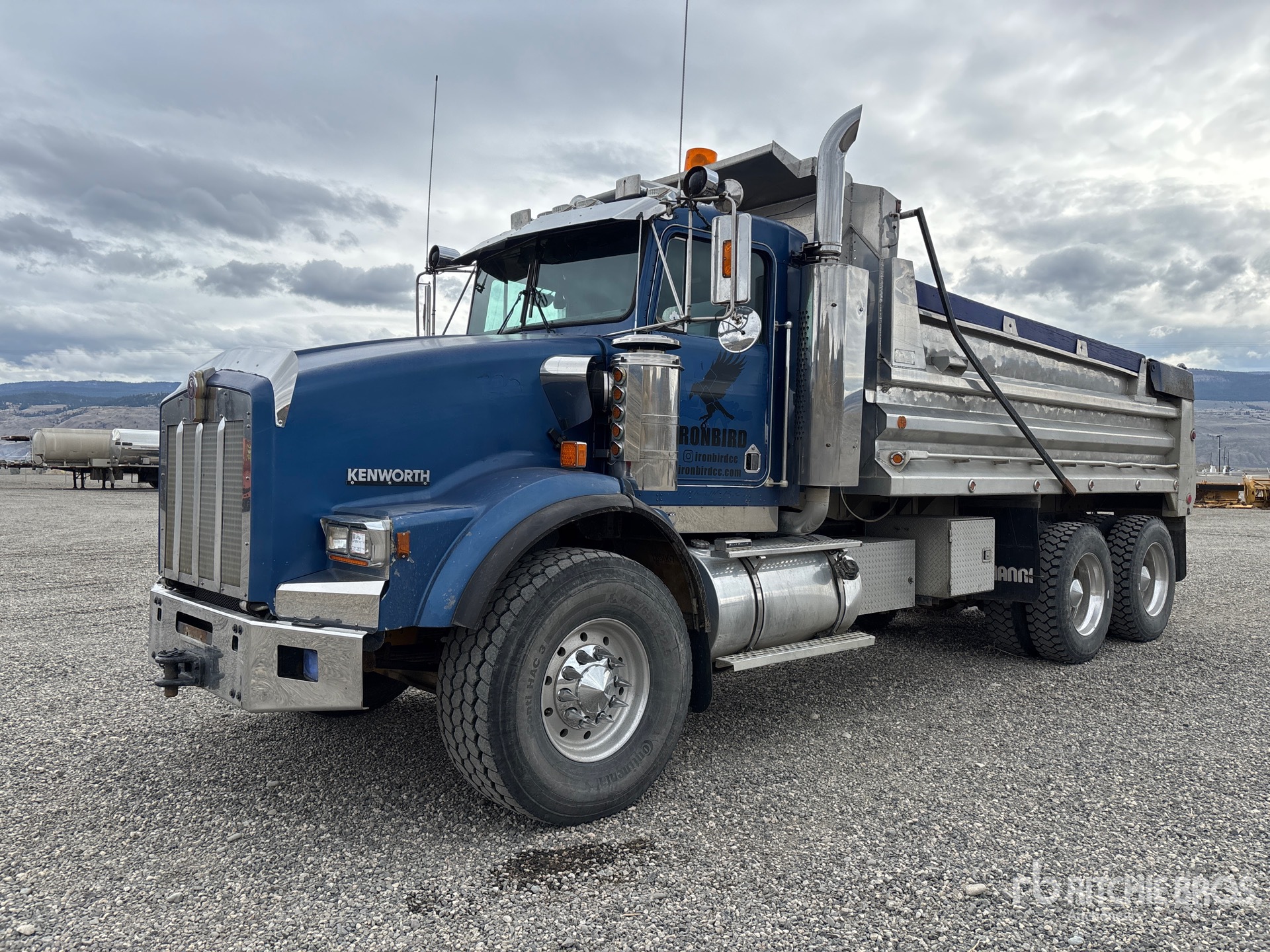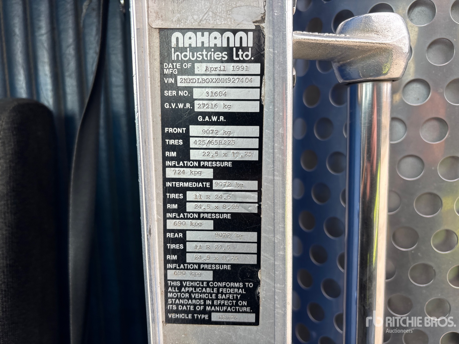 Cat 3406B 6 Cylinder 14.6 L Diesel Engine, 1991 US EPA Label, 9724 Engine hrs, Engine Brake, Eaton Fuller 15-Speed Manual Transmission, 9072 kg Front Axle, 18144 kg Rears, 27216 kg GVWR, Air Ride Cab, Aluminum Wheels, 445/65R22.5 Front Tires, 11R24.5 Rear Tires, Double Frame, Spring over Walking Beam Suspension, 224 in Wheelbase, PTO, Nahanni 16 ft 6 in Long x 40 in High Aluminium Body, Air Powered Roll Tarp, High-Lift Tailgate, Rear Hydraulics