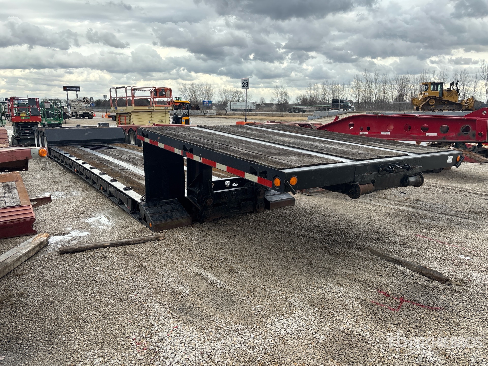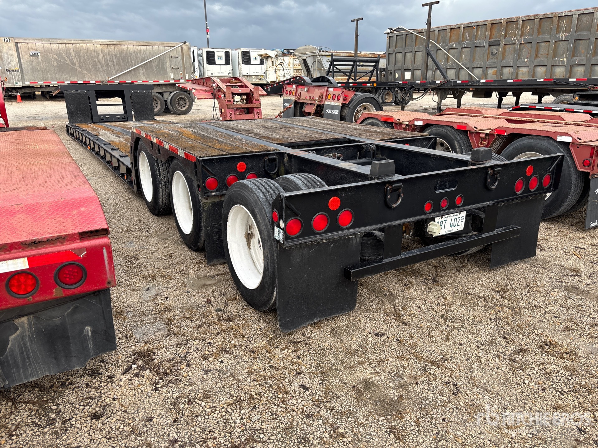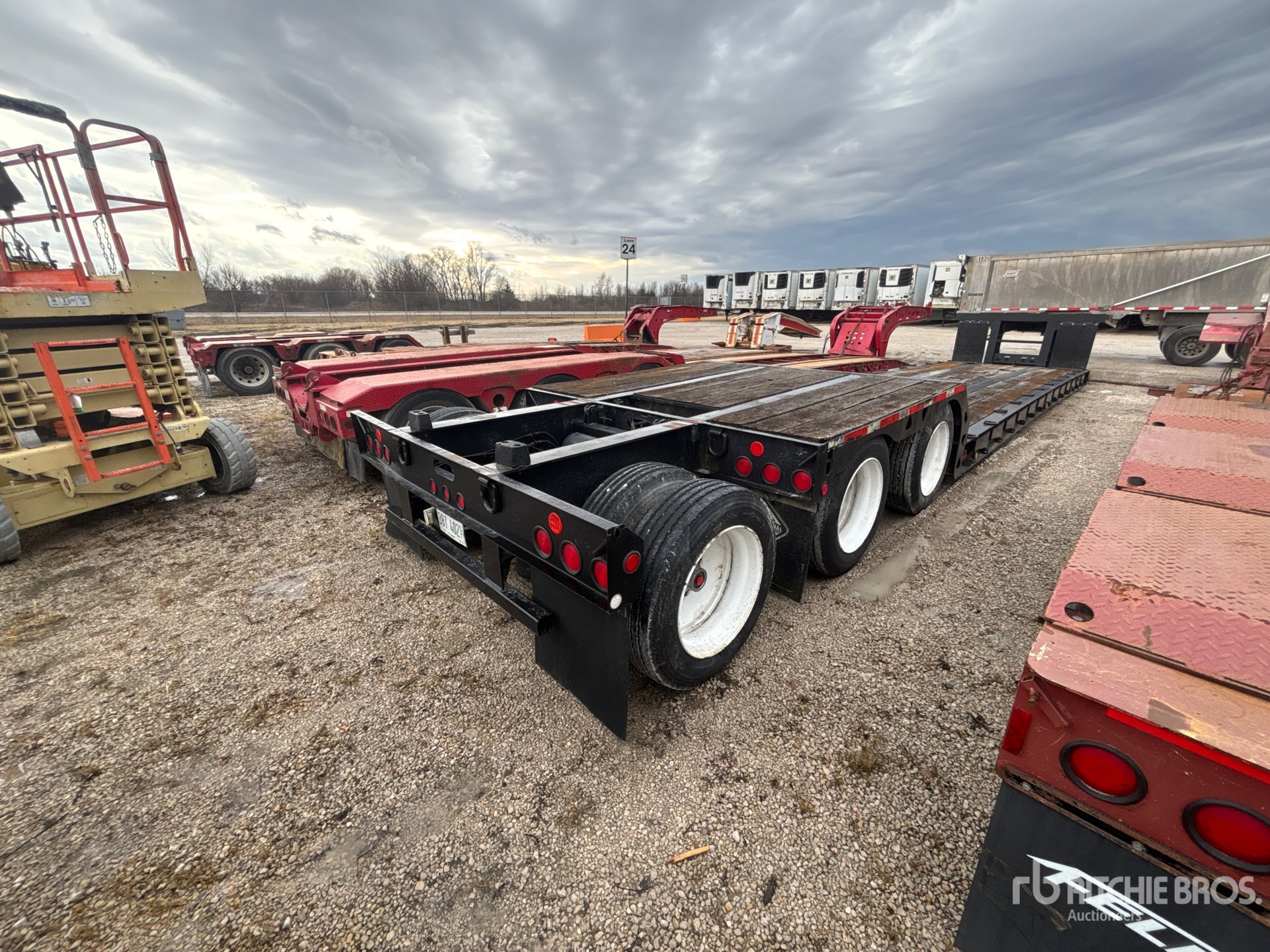 Located in Lane 24 Spot 4, Mechanical Removable Gooseneck, 28 ft x 102 in Main Deck, Upper Deck, Deck Over Tires, Folding Side Extensions, Air Ride Suspension, S/A Pin-On Booster Axle