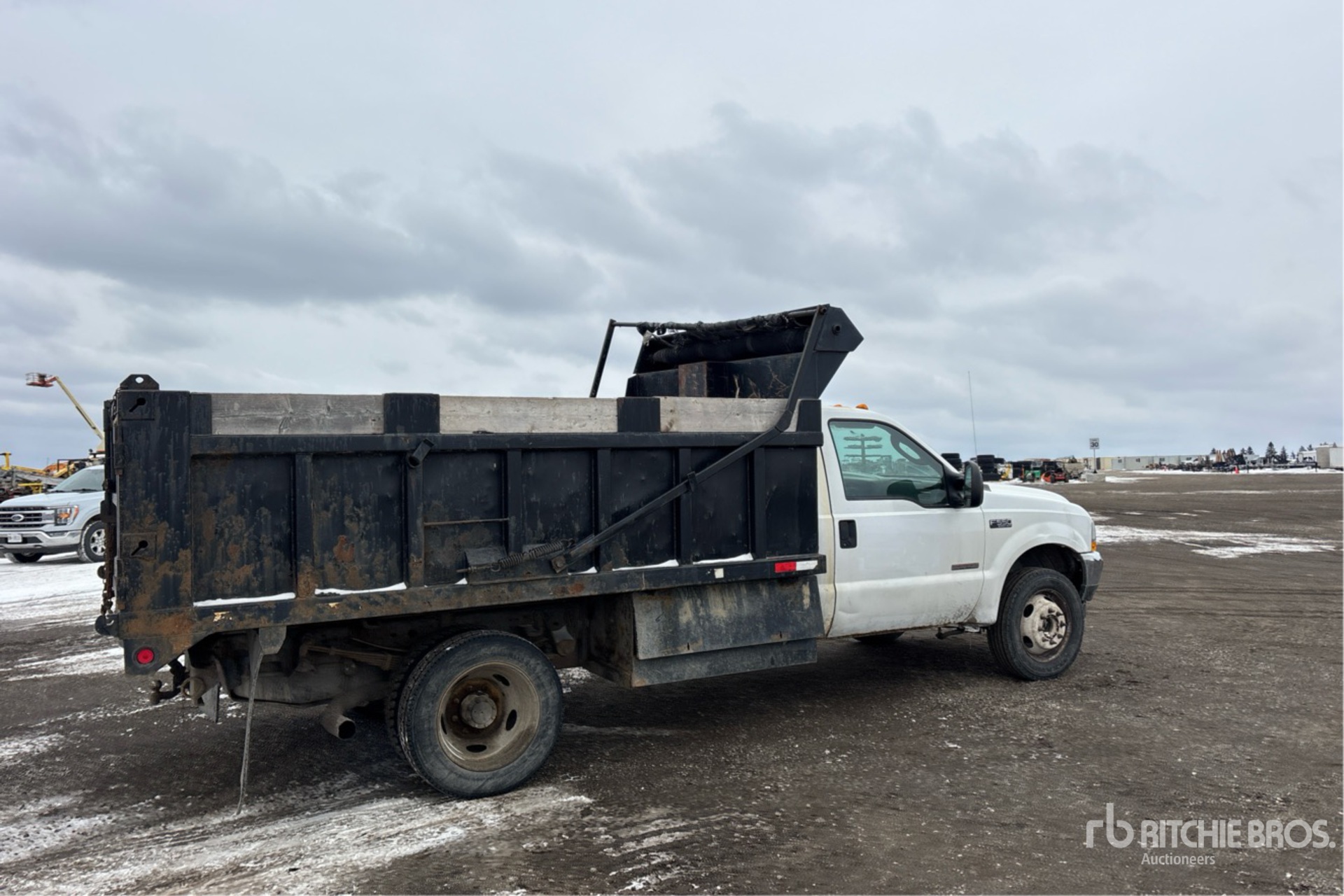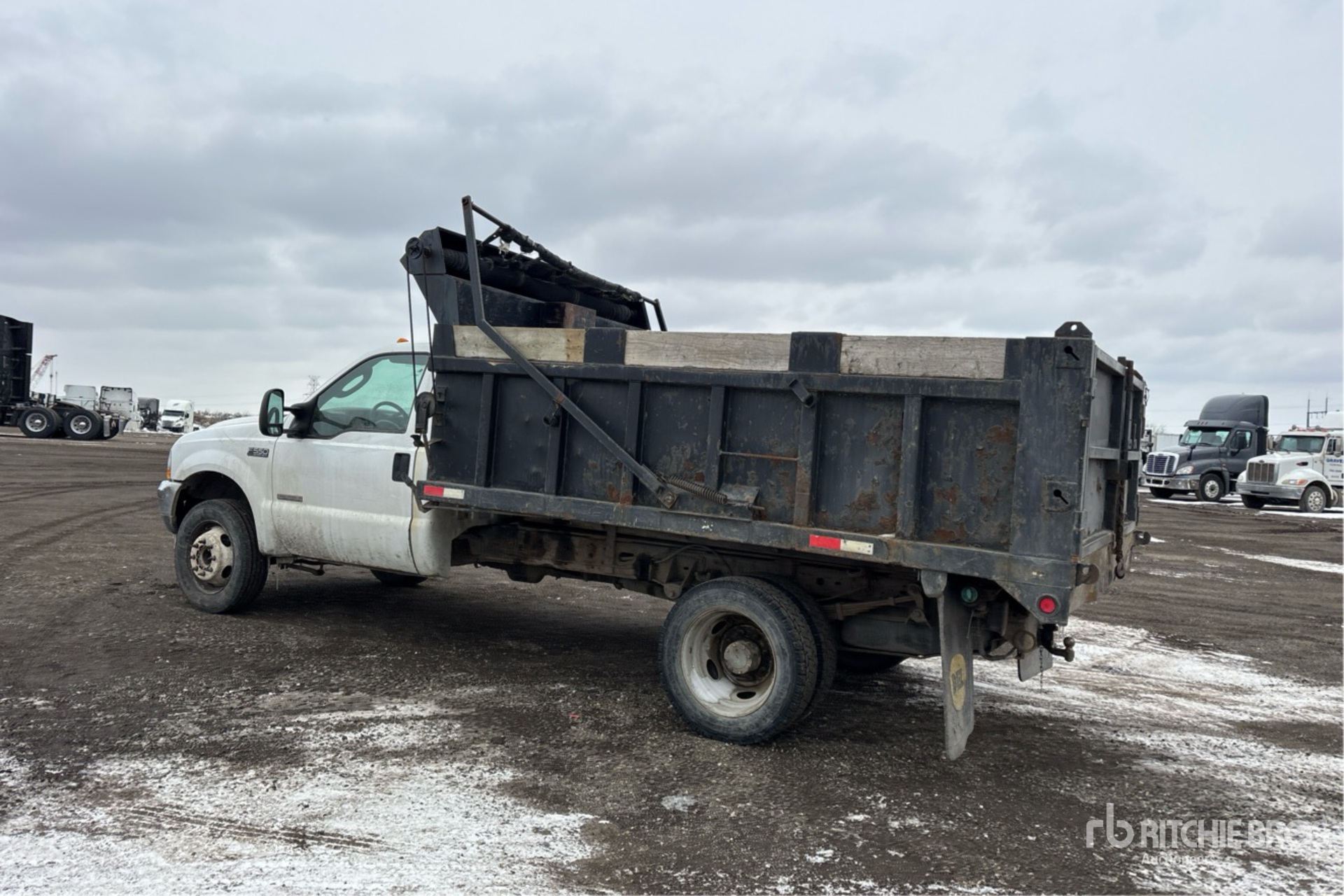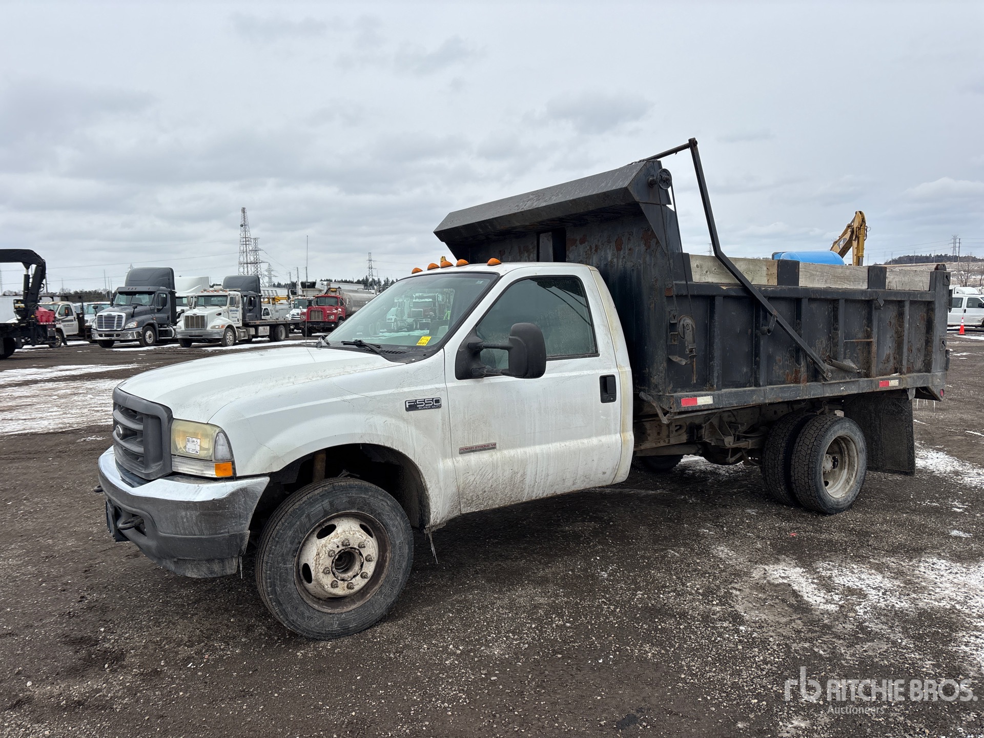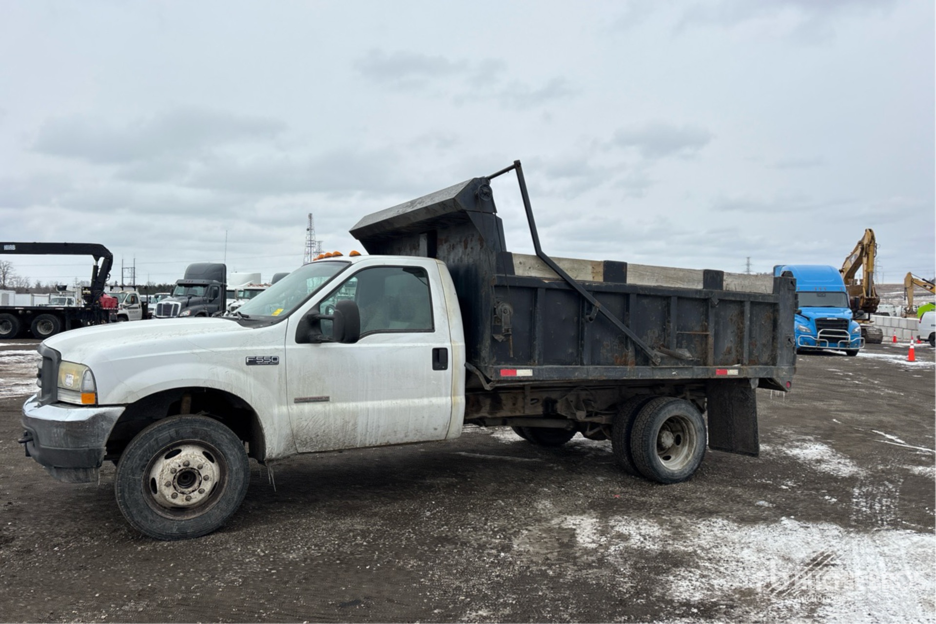 International 6.0 DIT V8 6 L Diesel Engine, 2005 US EPA Label, Automatic Transmission, 6000 lb Front Axle, 13500 lb Rears, 19000 lb GVWR, 225/70R19.5, Spring Suspension, 166 in Wheelbase, PTO, 11 ft 10 in Long x 2 ft 8 in High Steel Body, Manual Roll Tarp, Ball Hitch