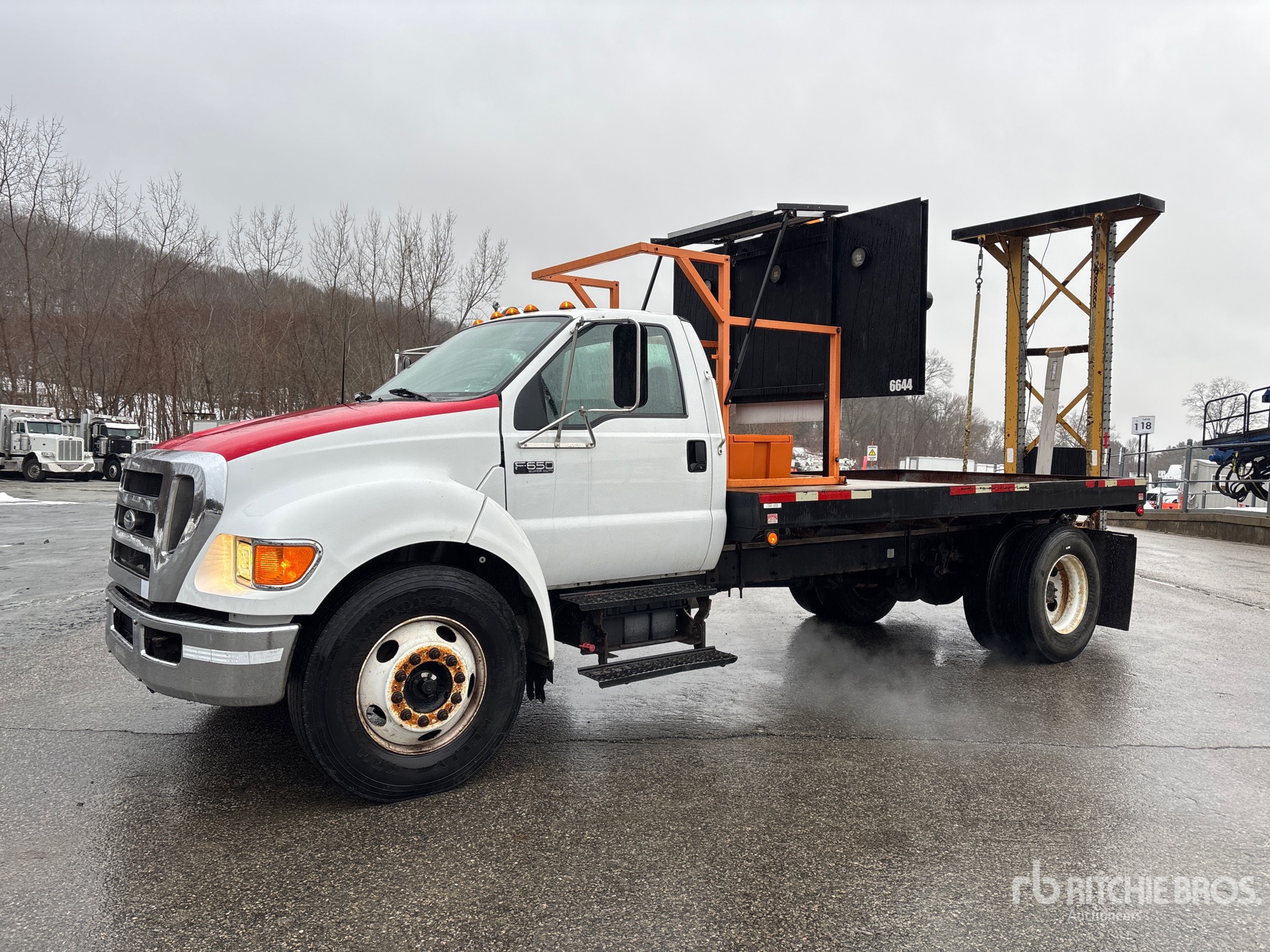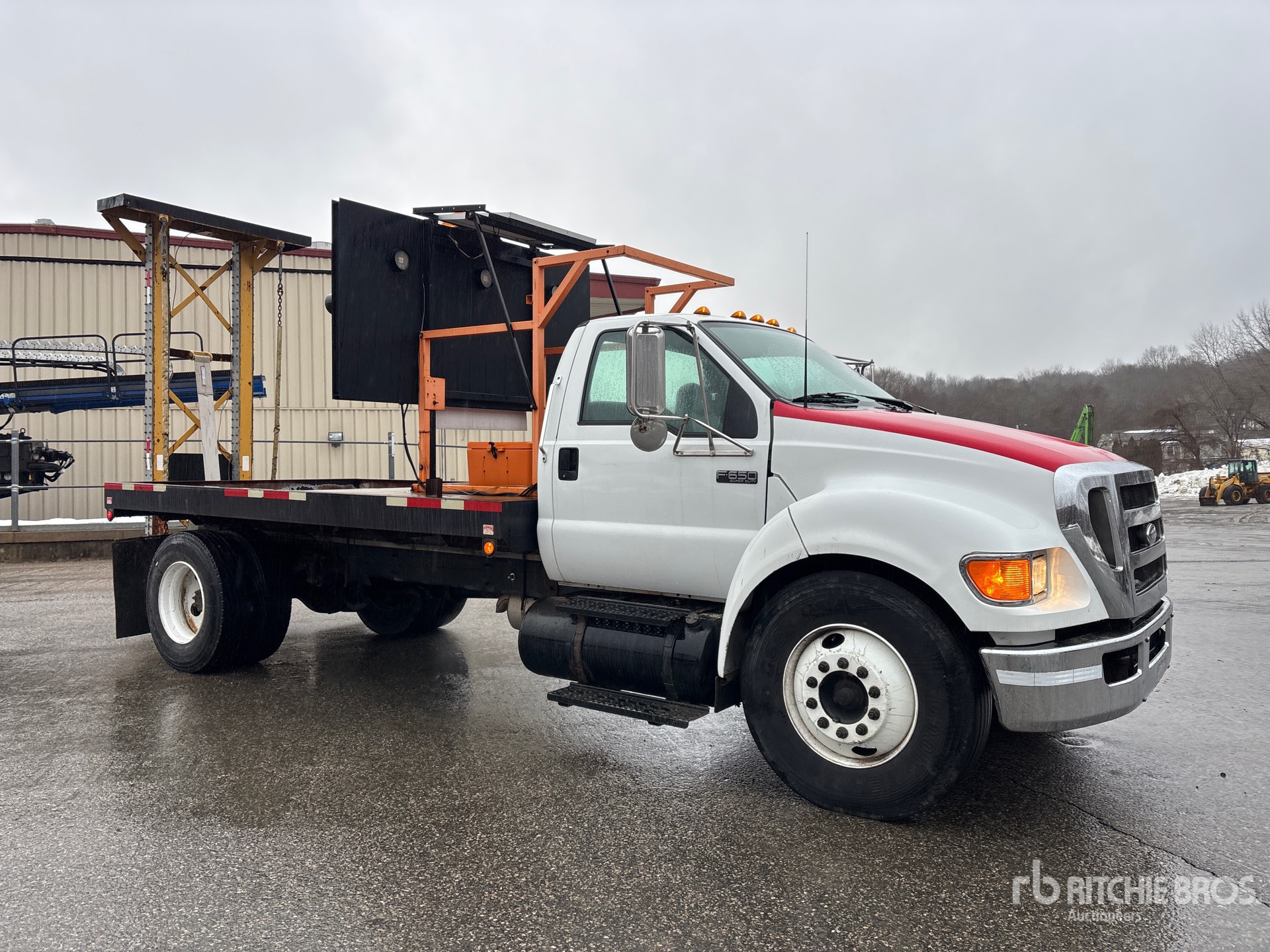 International B200 V8 6.0 L Diesel 200 hp Engine, US EPA Label, CARB Compliant, 7-Speed Manual Transmission, 8500 lb Front Axle, 17500 lb Rears, 26000 lb GVWR, 11R22.5, Spring Suspension, 200 in Wheelbase, Flatbed, Arrow Board, In-Cab Arrow Board Controller