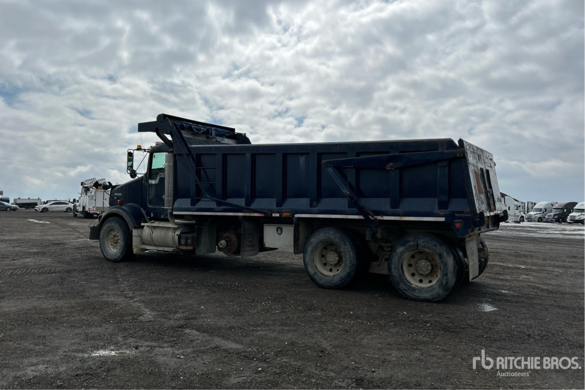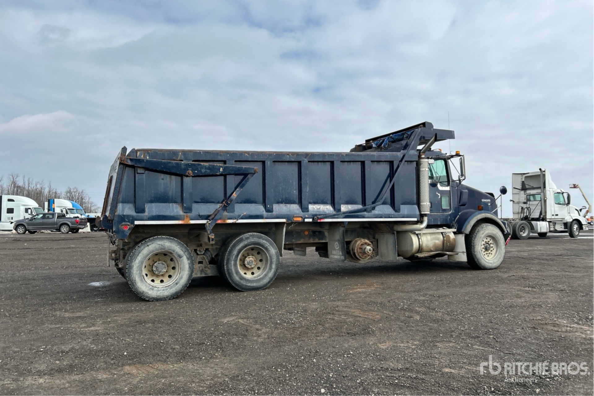 Cat C15 6 Cylinder Diesel Engine, 26862 Engine hrs, Engine Brake, Manual Transmission, Differential Lock, 4.11:1 Axle Ratio, 87618 lb GVWR, Aluminum Wheels, 425/65R22.5 Front Tires, 11R22.5 Rear Tires, Dual Steering Boxes, 261 in Wheelbase, PTO, 20 ft Long x 4 ft 5 in High Body, Round Bottom, Heated Box, Air Powered Roll Tarp, Tailgate Chute