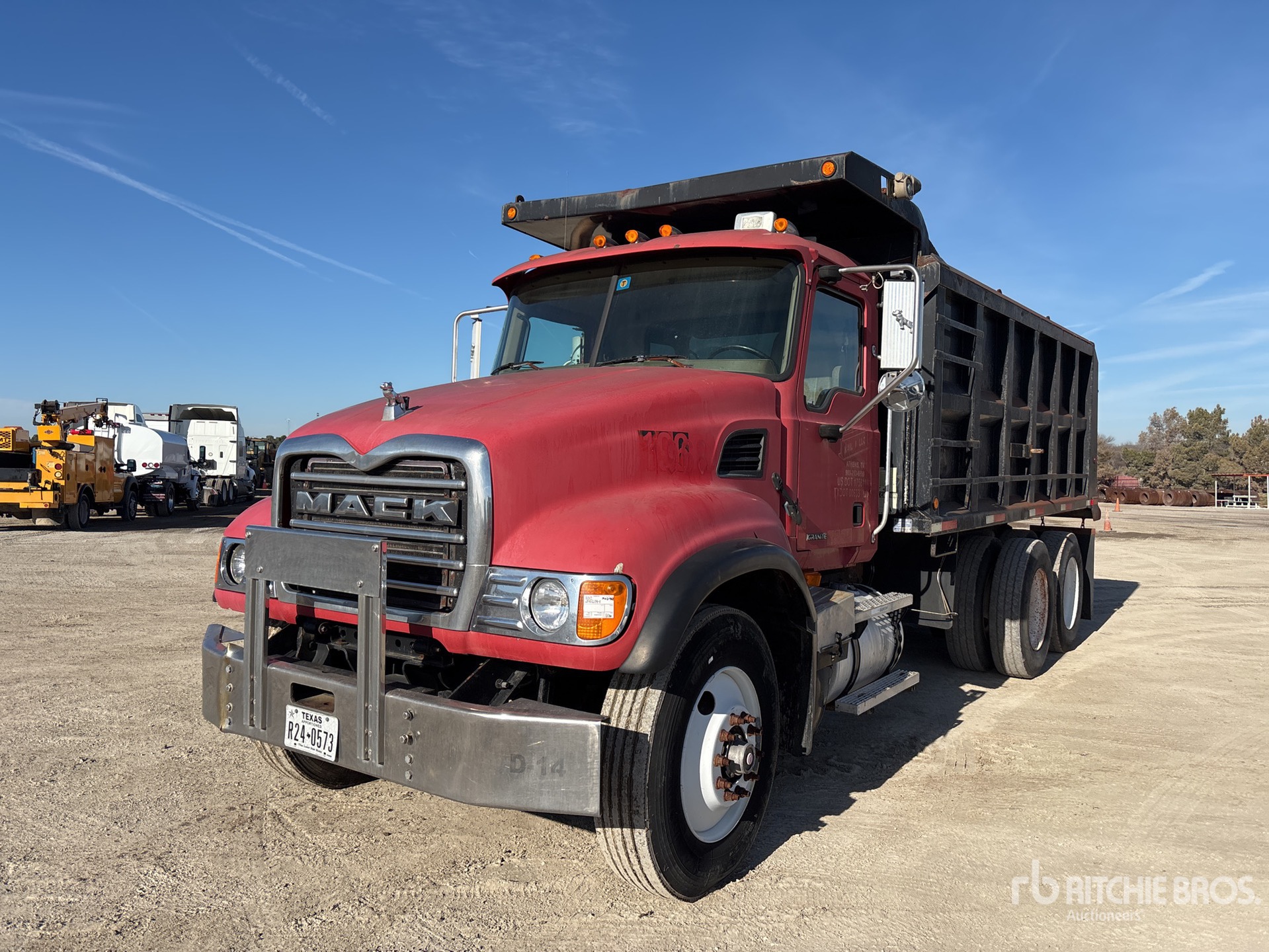 Located in Lane 45 Spot 18, Mack AMI Diesel 370 hp Engine, Mack Manual Transmission, 18000 lb Front Axle, 44000 lb Rears, 62000 lb GVWR, 11R24.5, Camelback Suspension, 215 in Wheelbase, OX Bodies 16 ft Long x 4 ft 8 in High Hardox Body, Electric Roll Tarp