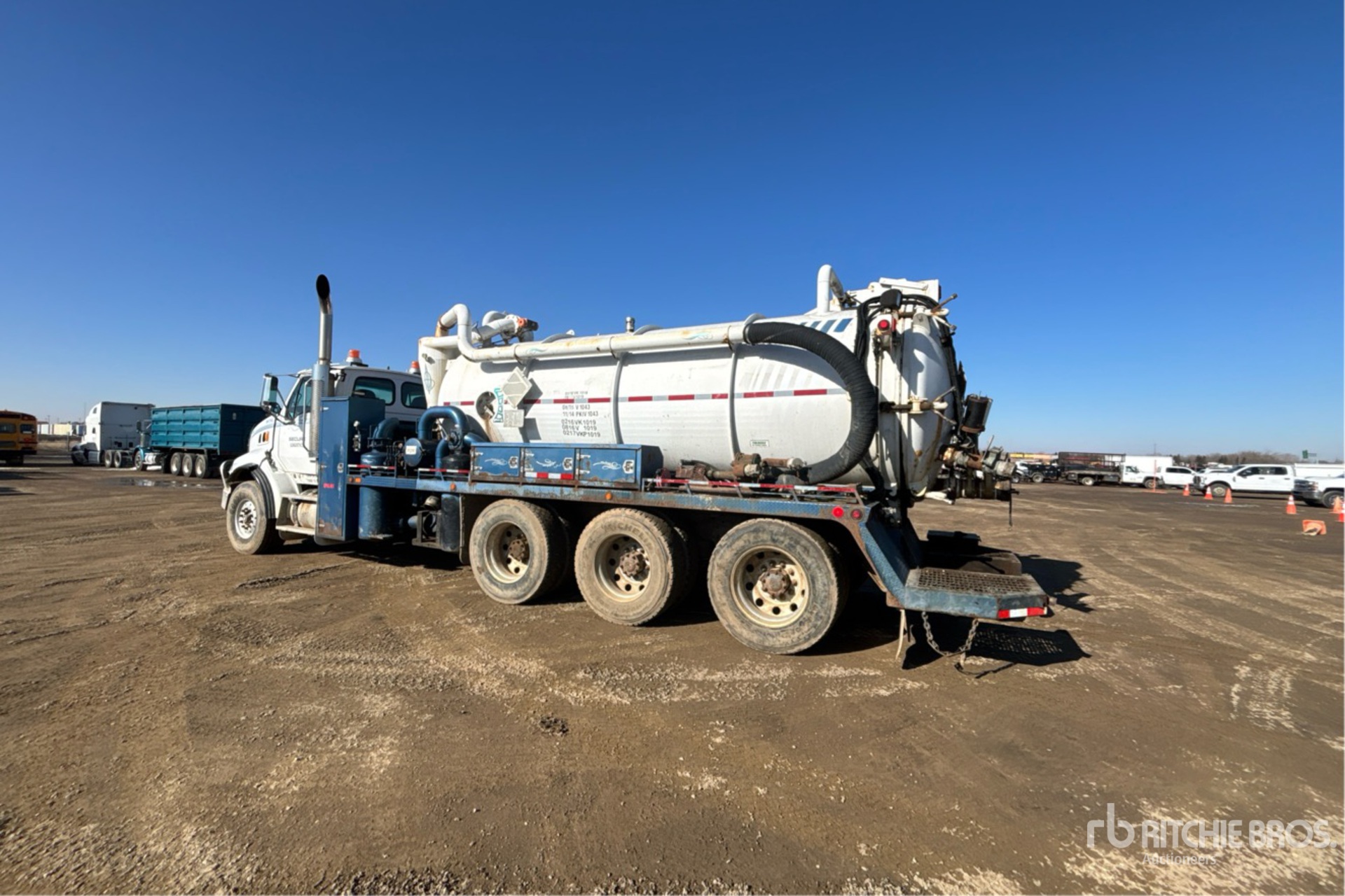 Located in Lane 45 Spot 40, Mercedes-Benz OM460LA 6 Cylinder 12.8 L Diesel 450 hp Engine, 2005 US EPA Label, 14560 Engine hrs, Engine Brake, Eaton Fuller 18-Speed Manual Transmission, Triple Differential Locks, 20000 lb Front Axle, 53700 lb Rears, 425/65R22.5 Front Tires, 11R24.5 Rear Tires, Airliner Air Ride Suspension, 262 in Wheelbase, Steel 14797 L Debris Tank, TC412 Code, Full Open Tailgate, Manual Tailgate Locks, Blower