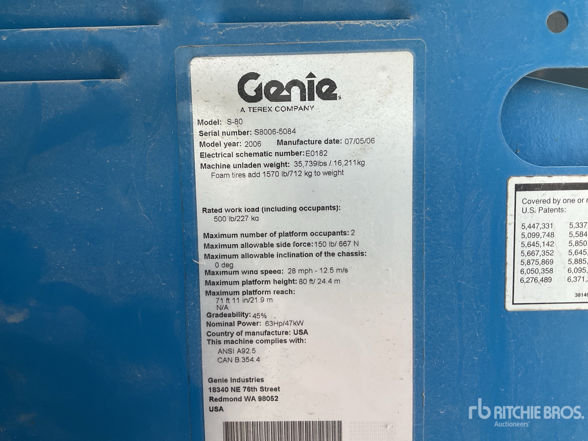The detailed equipment information is limited in scope, and Ritchie Bros. Auctioneers has not inspected any aspects or components of the equipment other than those expressly set forth herein. Unless expressly stated, we make no representations or warranties, express or implied, concerning the equipment or its components, including without limitation any representations or warranties concerning functionality, conformity or compliance with any safety standard or requirement of any applicable authority or regulatory body, fitness for any particular purpose, or merchantability. You are strongly advised to perform your own detailed inspection of the equipment prior to bidding.
