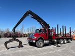 Cummins ISM 10.8 L Diesel Engine, 18325 Engine hrs, Engine Brake, Eaton Fuller Manual Transmission, Differential Lock, Air Ride Cab, Aluminum Front Wheels, 425/65R22.5 Front Tires, 11R22.5 Rear Tires, Air Lift Tag Axle, Dual Steering Boxes, Double Frame, Rubber over Walking Beam Suspension, PTO, 24 ft 6 in Deck Length, 96 in Deck Width, Front Mounted, Knuckle Boom, ( 4 ) Bunks