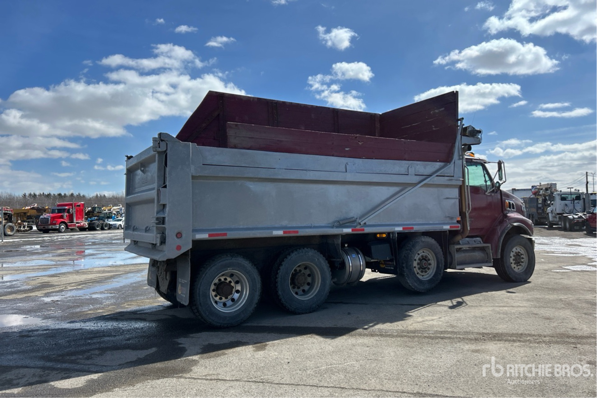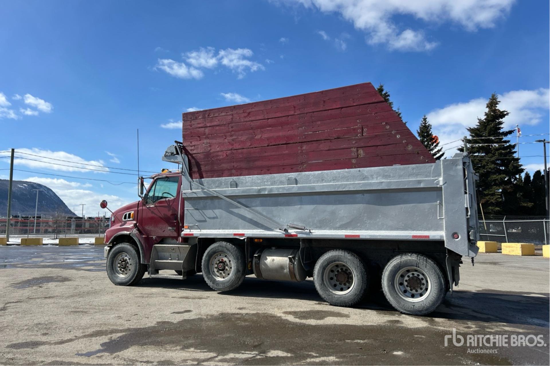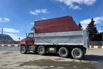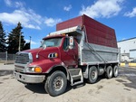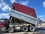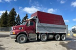 Mercedes-Benz 6 Cylinder Diesel Engine, 8660 Engine hrs, Engine Brake, Allison Automatic Transmission, Differential Lock, 32000 lb Front Axle, 40000 lb Rears, 72000 lb GVWR, Aluminum Outer Wheels, 315/80R22.5 Front Tires, 11R22.5 Rear Tires, Steerable Air Lift Tag Axle, Dual Steering Boxes, Air Ride Suspension, 240 in Wheelbase, PTO, Lagacé 19 ft Long x 4 ft High Steel Body, Electric Roll Tarp, 2-Way Tailgate