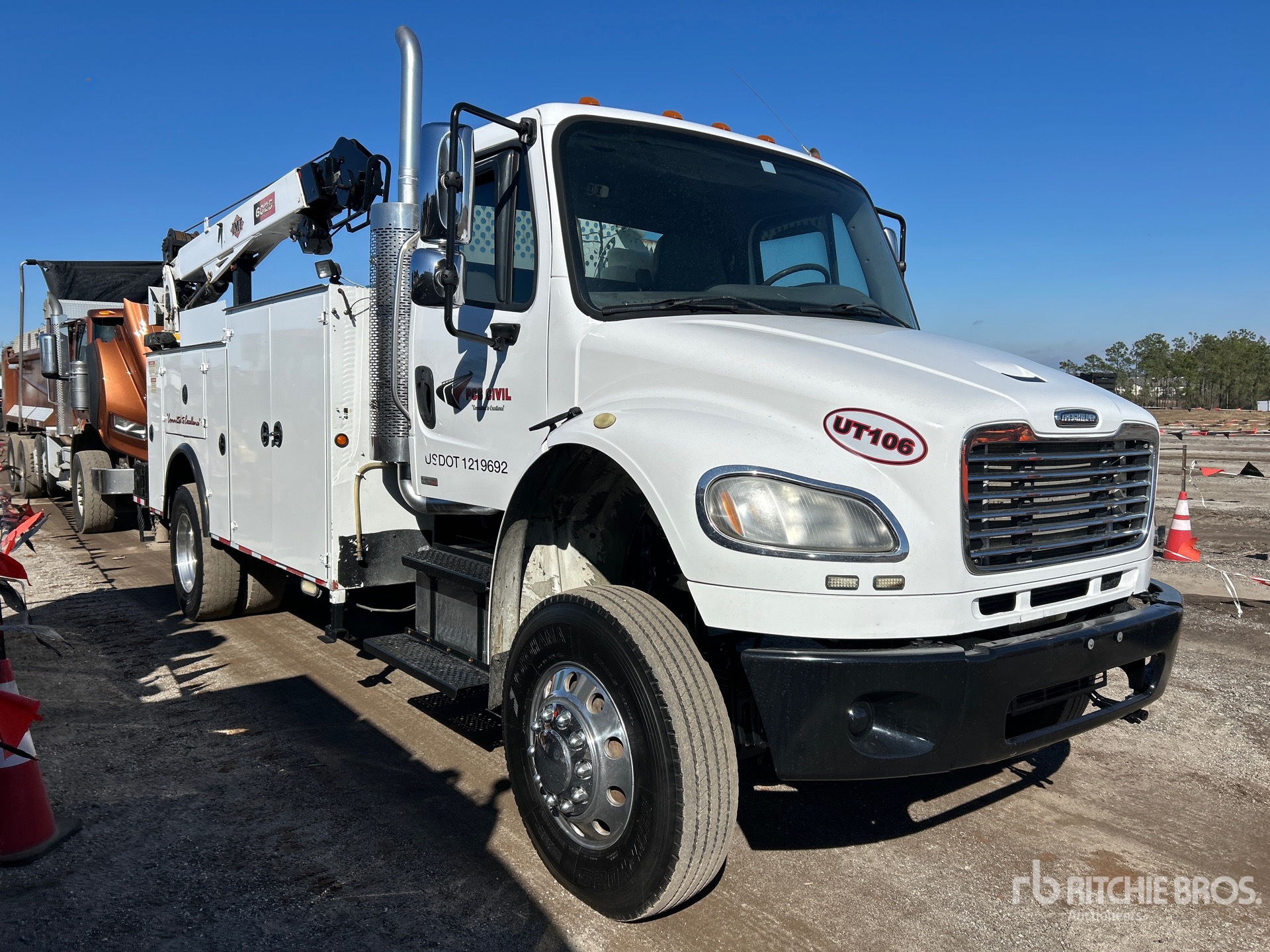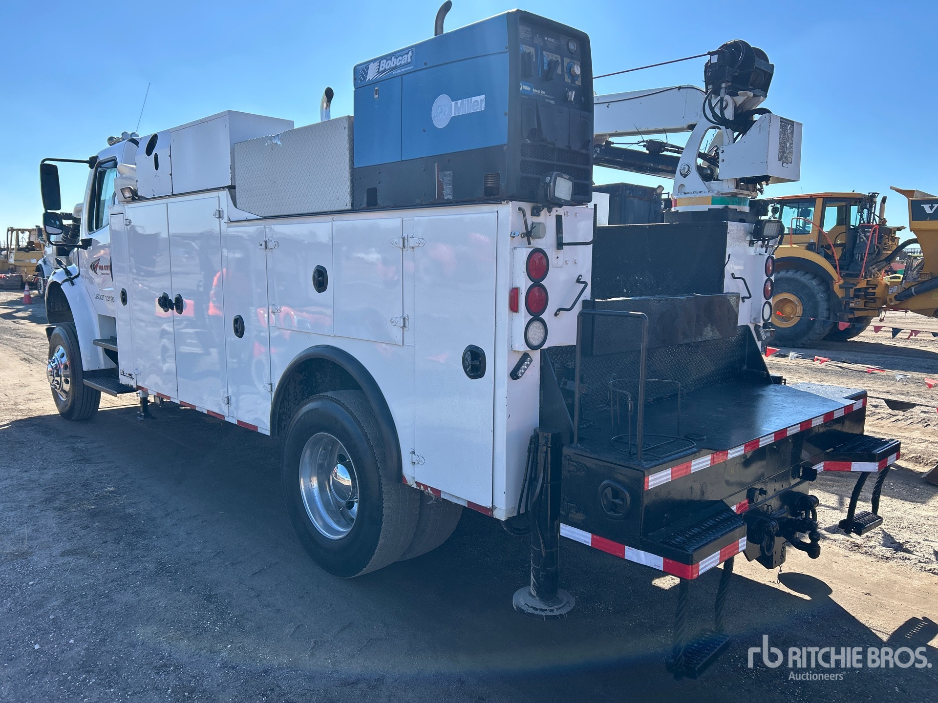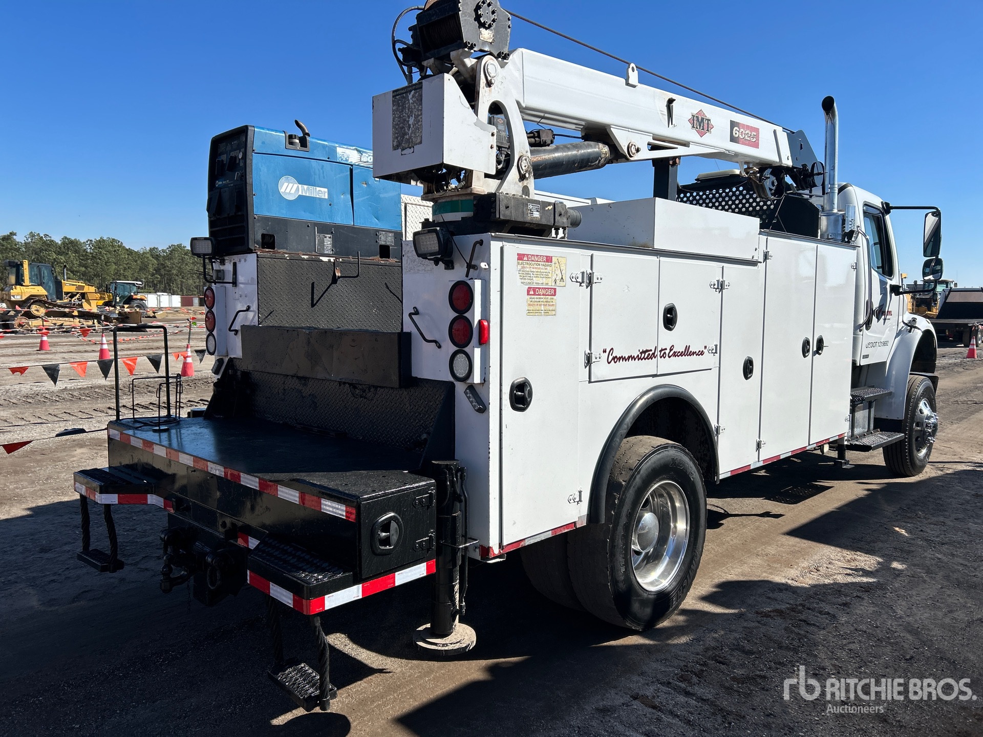 6 Cylinder Diesel Engine, 2008 US EPA Label, Eaton Fuller 10-Speed Manual Transmission, 12000 lb Front Axle, 21000 lb Rears, 33000 lb GVWR, 11R22.5, Air Ride Suspension, 187 in Wheelbase, PTO, 16 ft Body, Hydraulic Stabilizers, IMT 10500 lb 3 Section Hydraulic Crane, Miller Generator Set