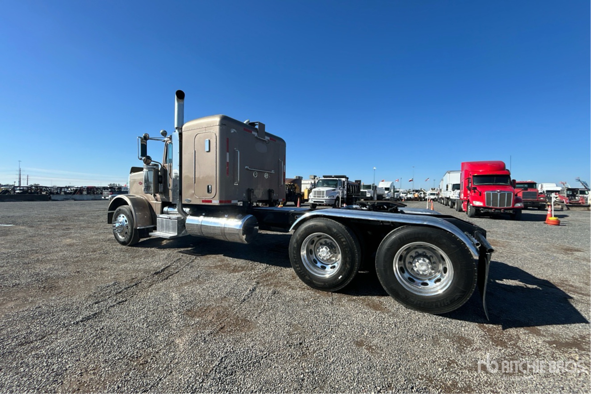 Cat C13 Engine, Eaton Fuller 10-Speed Manual Transmission, 12000 lb Front Axle, 40000 lb Rears, 52000 lb GVWR, Engine Brake, 36 in Flat Top Sleeper Cab, 248 in Wheelbase, Air Suspension, Aluminum Outer Wheels, 11R24.5, Air Sliding 5th Wheel, Dual Fuel Tanks