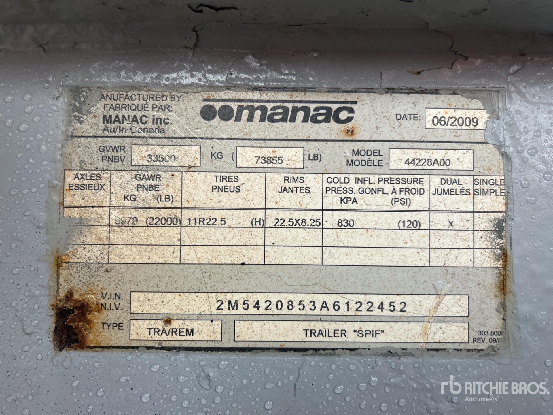 The detailed equipment information is limited in scope, and Ritchie Bros. Auctioneers has not inspected any aspects or components of the equipment other than those expressly set forth herein. Unless expressly stated, we make no representations or warranties, express or implied, concerning the equipment or its components, including without limitation any representations or warranties concerning functionality, conformity or compliance with any safety standard or requirement of any applicable authority or regulatory body, fitness for any particular purpose, or merchantability. You are strongly advised to perform your own detailed inspection of the equipment prior to bidding.