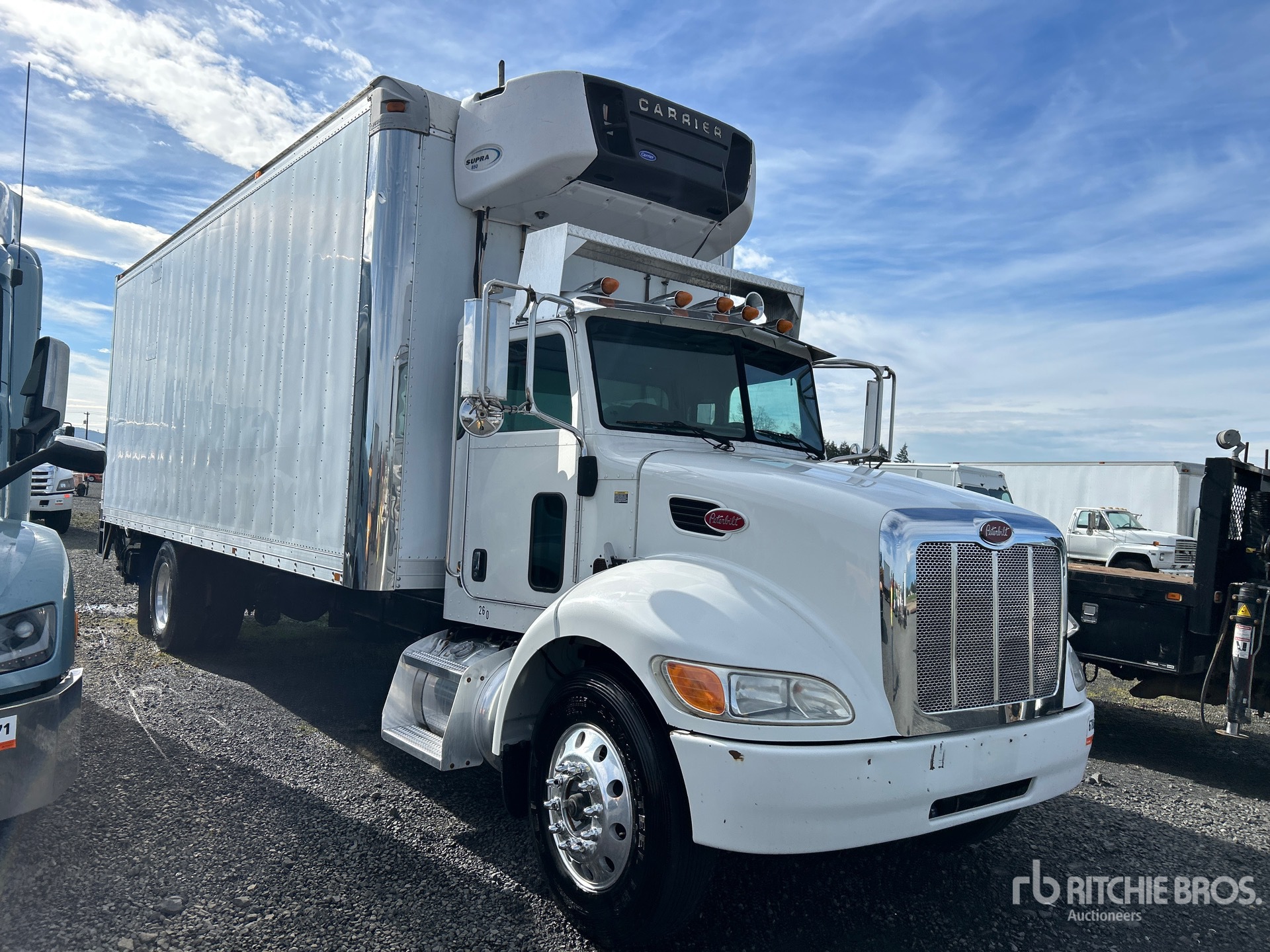 Located in Lane 30 Spot 18, Paccar PX6 6 Cylinder 6.7 L Diesel 260 hp Engine, 2009 US EPA Label, 10112 Engine hrs, Allison 2500 Automatic Transmission, 10000 lb Front Axle, 20000 lb Rears, Dana S21-170 Drive Axles, 4.78:1 Axle Ratio, 26000 lb GVWR, Aluminum Outer Wheels, 295/75R22.5, Air Ride Suspension, 258 in Wheelbase, Carrier Supra 850 Reefer Unit, Morgan 24 ft x 102 in Wide x 103 in High Body, Liftgate