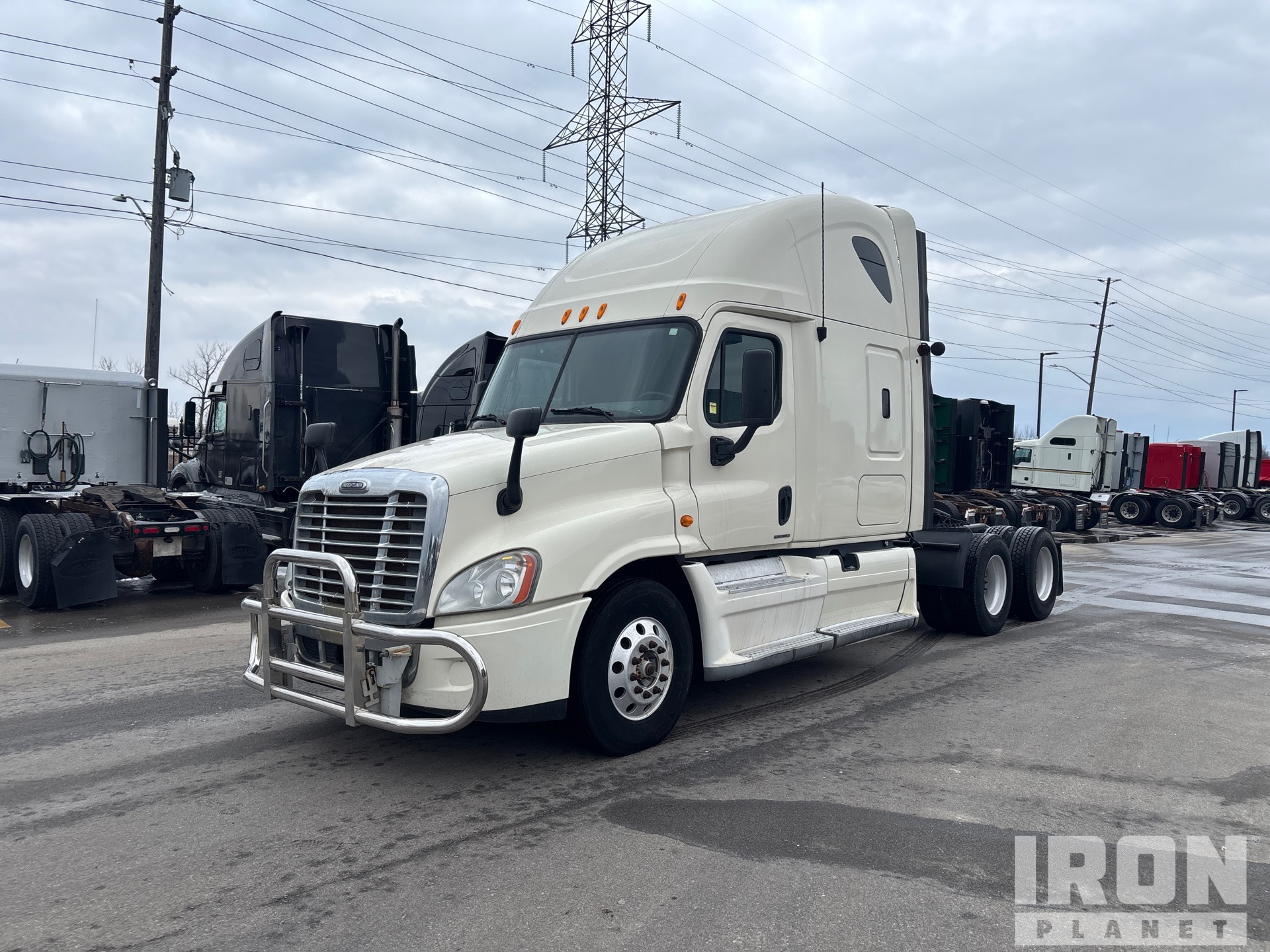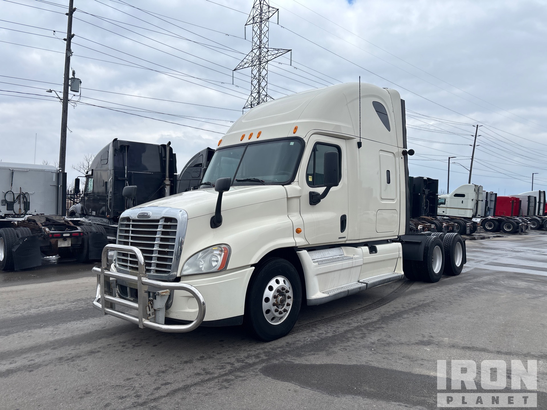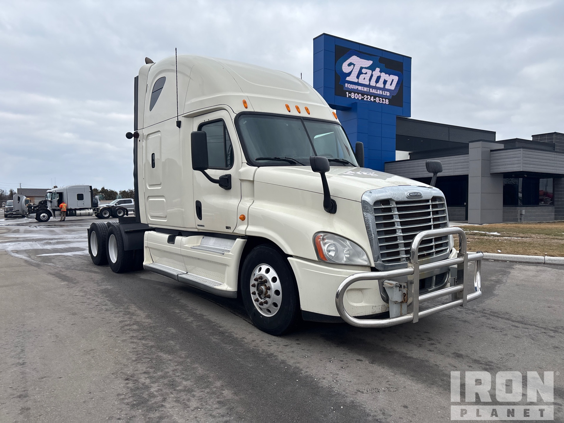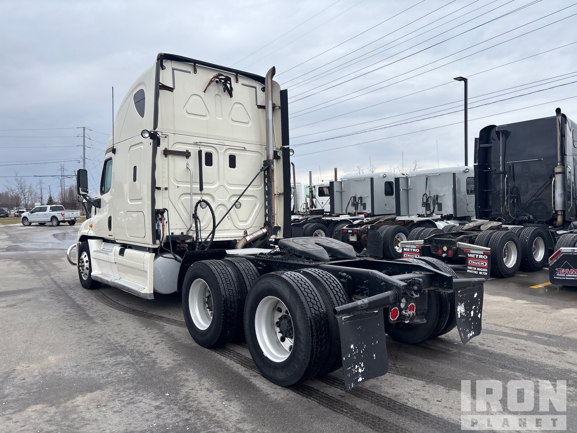 Detroit DD15 Engine, Eaton Fuller FM-15E310B Automatic Transmission, 12350 lb Front Axle, 40000 lb Rears, 52350 lb GVWR, Engine Brake, 70 in High Rise Sleeper Cab, Bunk Beds, 232 in Wheelbase, Air Suspension, Aluminum Wheels, 11R22.5, Air Sliding 5th Wheel, Dual Fuel Tanks