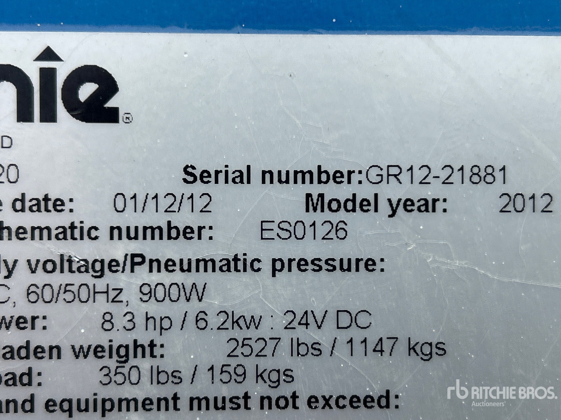 The detailed equipment information is limited in scope, and Ritchie Bros. Auctioneers has not inspected any aspects or components of the equipment other than those expressly set forth herein. Unless expressly stated, we make no representations or warranties, express or implied, concerning the equipment or its components, including without limitation any representations or warranties concerning functionality, conformity or compliance with any safety standard or requirement of any applicable authority or regulatory body, fitness for any particular purpose, or merchantability. You are strongly advised to perform your own detailed inspection of the equipment prior to bidding.