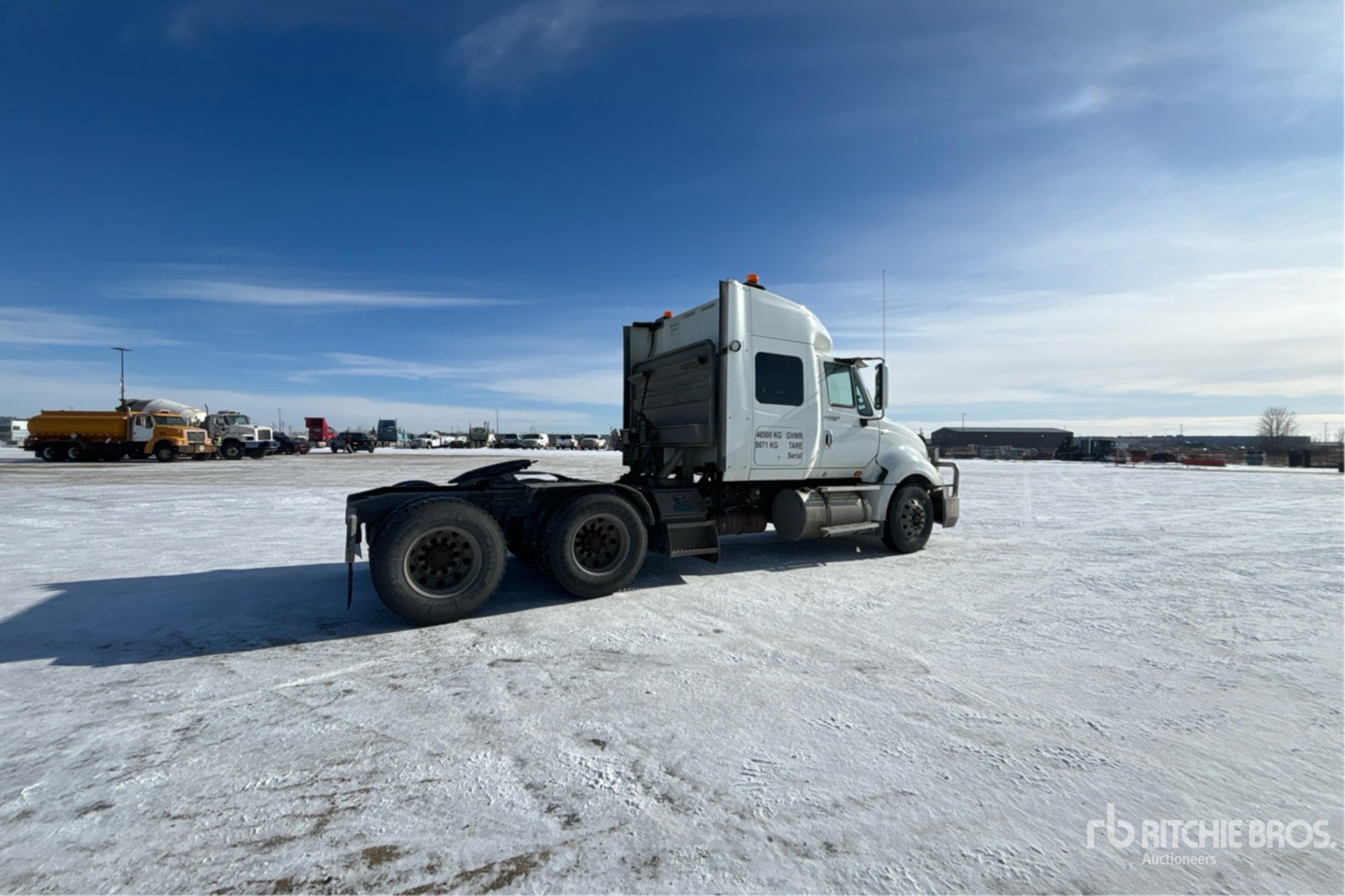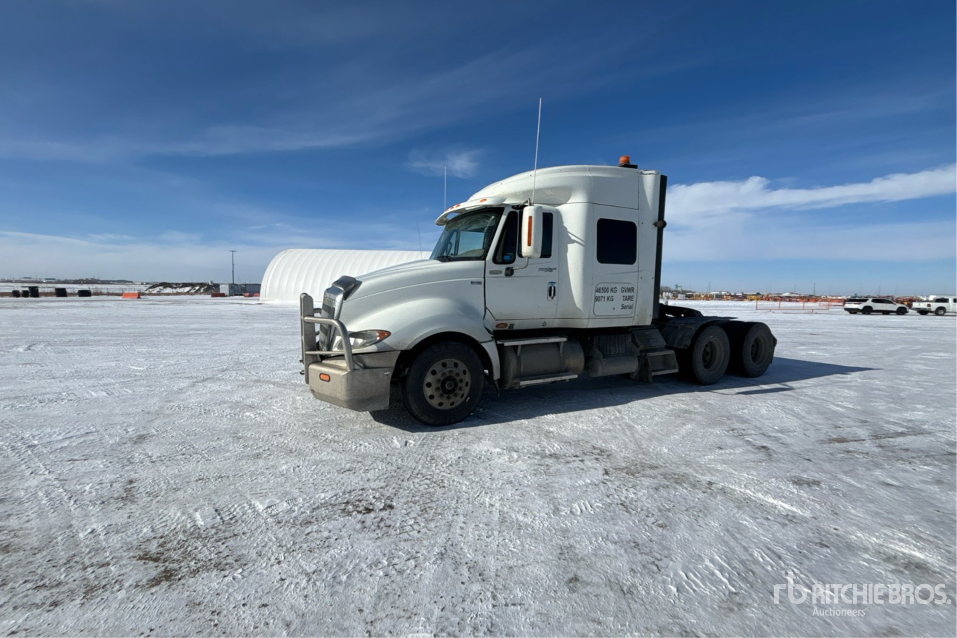 Located in Lane 33 Spot 7, Navistar Engine, US EPA Label, 11254 Engine hrs, Eaton Fuller 13-Speed Manual Transmission, 12000 lb Front Axle, 40000 lb Rears, 52000 lb GVWR, Differential Lock, 51 in Mid Roof Sleeper Cab, 218 in Wheelbase, Air Suspension, 11R22.5, Air Sliding 5th Wheel, Dual Fuel Tanks, Headache Rack