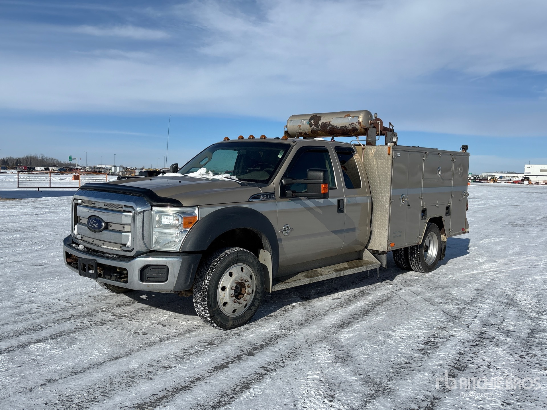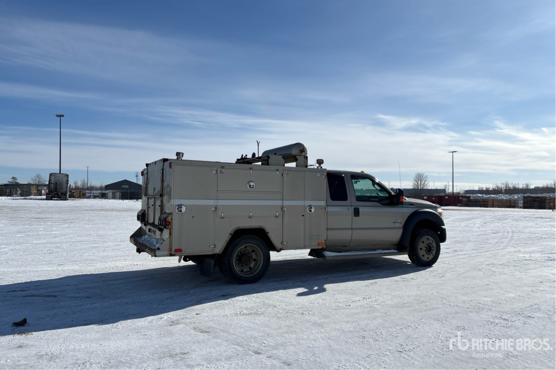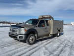 Located in Lane 41 Spot 12, V8 6.7 L Diesel Engine, Requires Diesel Exhaust Fluid, 8505 Engine hrs, Automatic Transmission, 6500 lb Front Axle, 14706 lb Rears, 19500 lb GVWR, Aluminum Wheels, 225/70R19.5, Spring Suspension, 164 in Wheelbase, Ventures 9 ft Body, John Deere AC2-8GS 18.3 cfm Gasoline Air Compressor