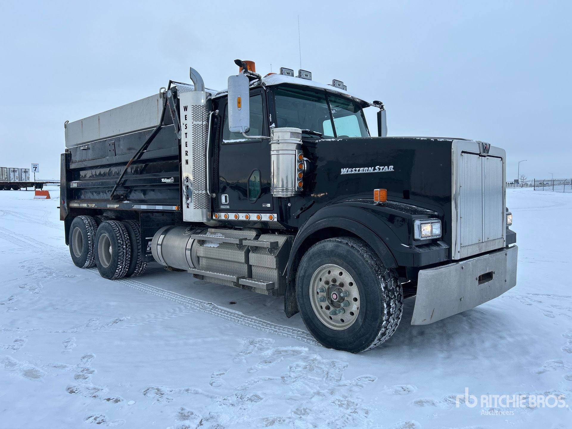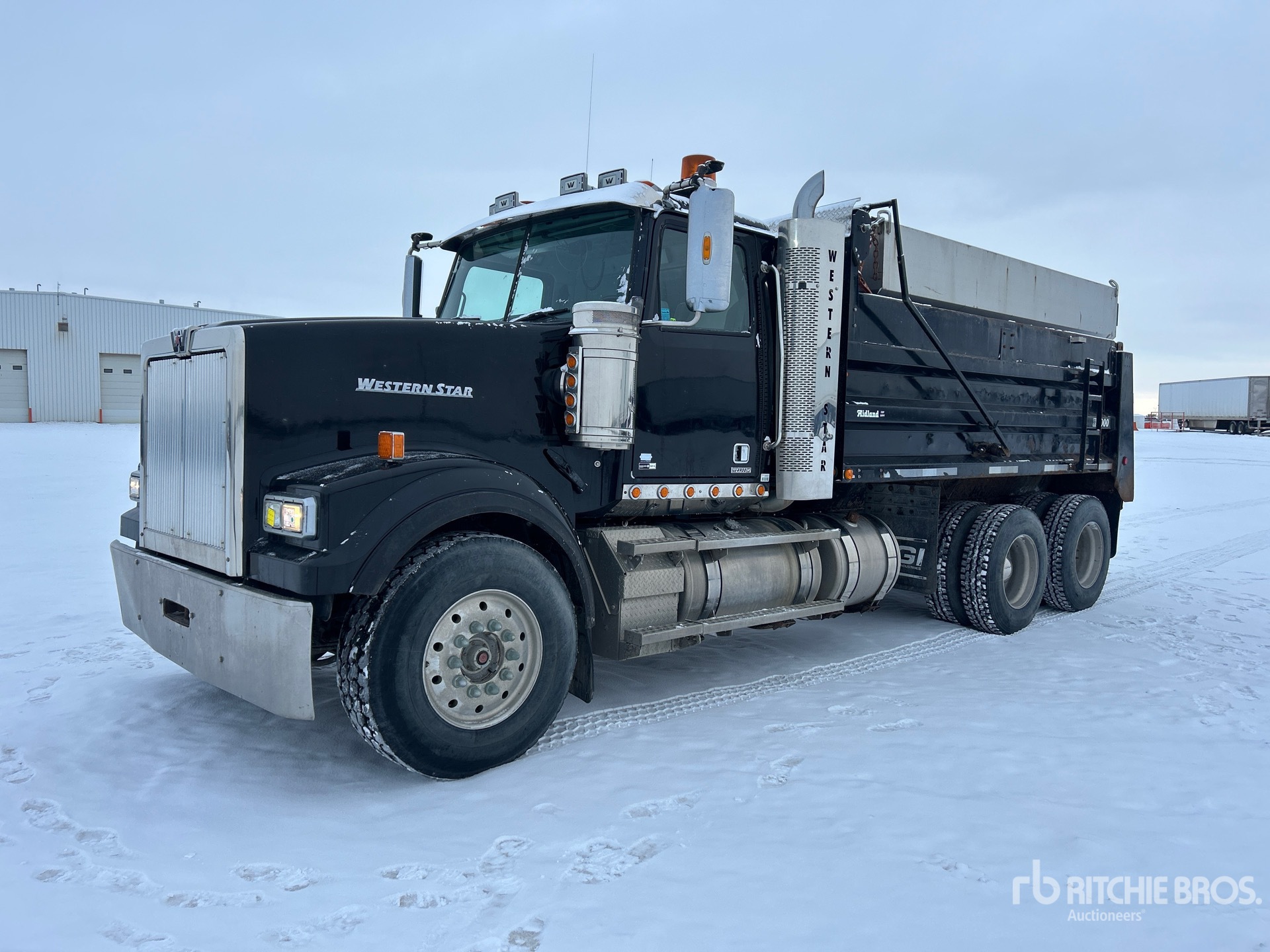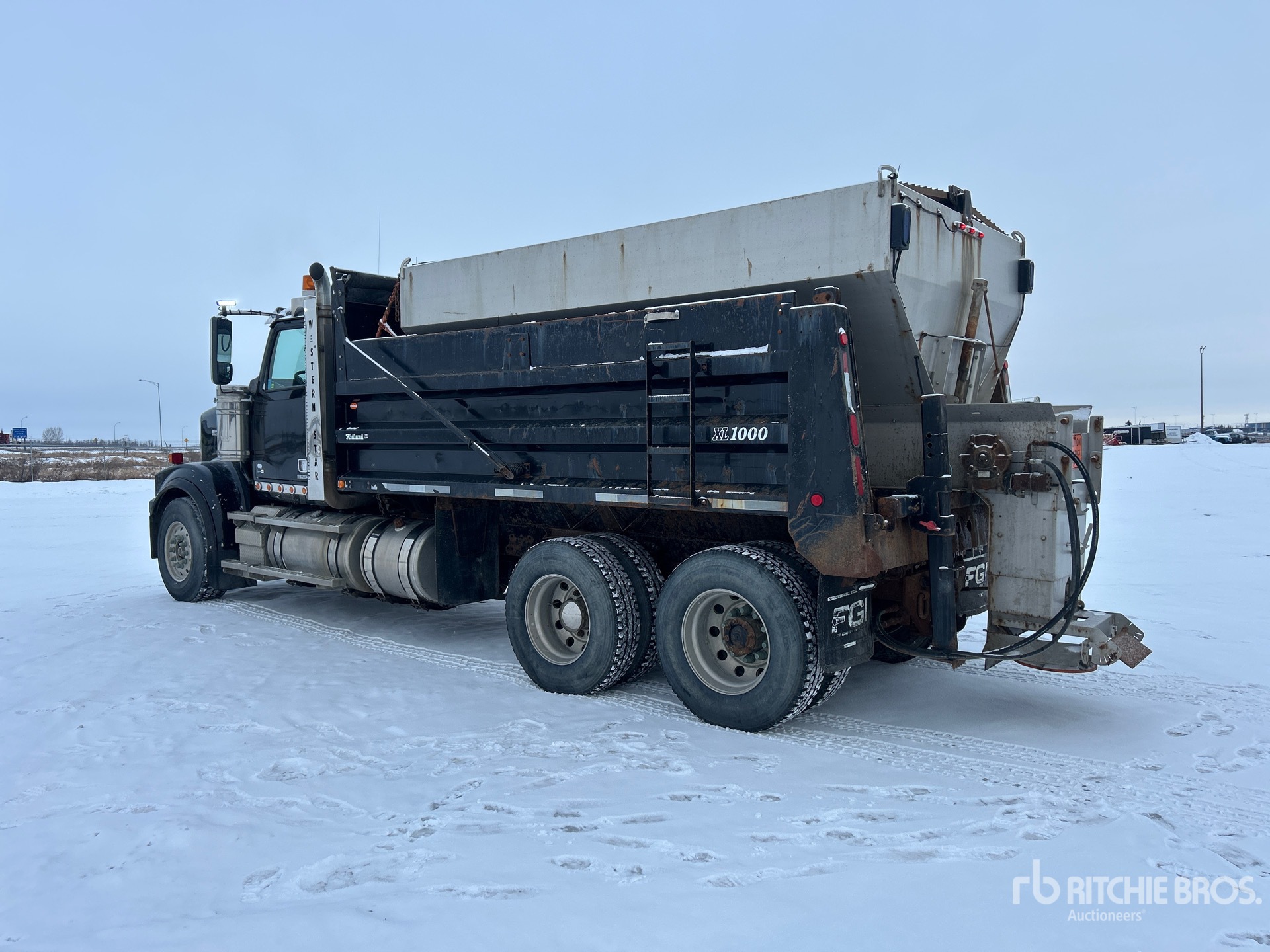 Detroit DD13 6 Cylinder Diesel Engine, 2012 US EPA Label, 7159 Engine hrs, Engine Brake, Allison 4000 Automatic Transmission, Double Differential Locks, 14000 lb Front Axle, 40000 lb Rears, 54000 lb GVWR, Aluminum Wheels, 385/65R22.5 Front Tires, 11R22.5 Rear Tires, Airliner Air Ride Suspension, 203 in Wheelbase, PTO, Steel Slide-In Spreader, 1 Spinners, In-Cab Controls, Midland 15 ft Long x 3 ft 10 in High Steel Body, Electric Roll Tarp, Ringfeder