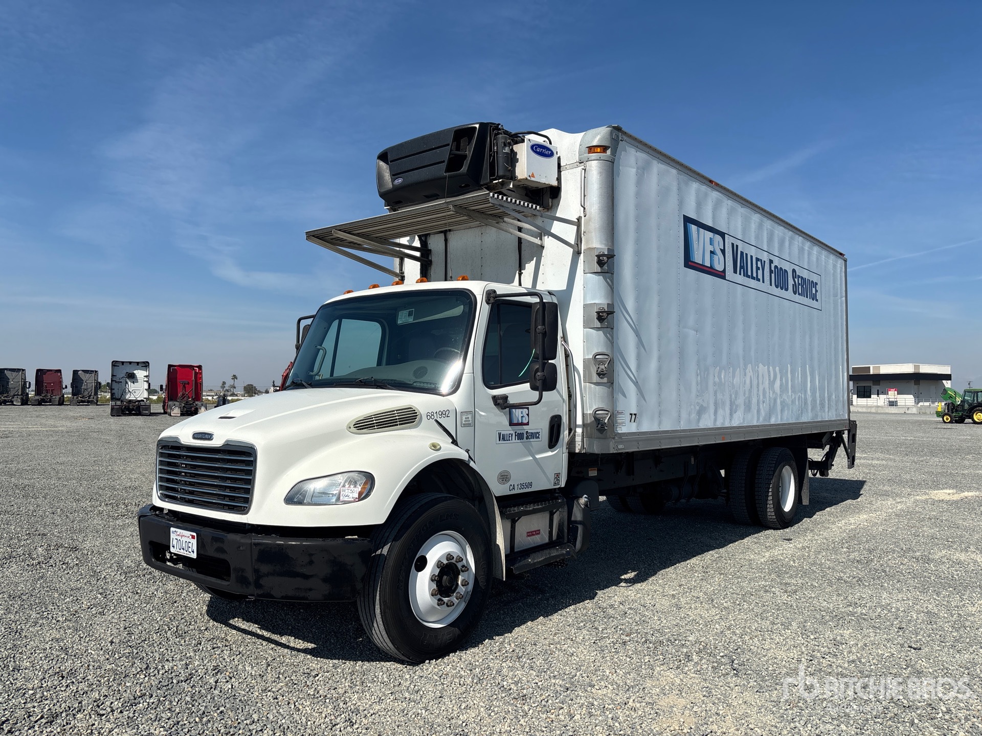Cummins ISB 6 Cylinder 6.7 L Diesel 220 hp Engine, 2014 US EPA Label, Requires Diesel Exhaust Fluid, 7710 Engine hrs, Allison 2500 Automatic Transmission, 12000 lb Front Axle, 21000 lb Rears, 5.88:1 Axle Ratio, 33000 lb GVWR, 11R22.5, Air Ride Suspension, 252 in Wheelbase, Carrier Reefer Unit, Supreme 24 ft x 102 in Wide x 103 in High Body, Liftgate