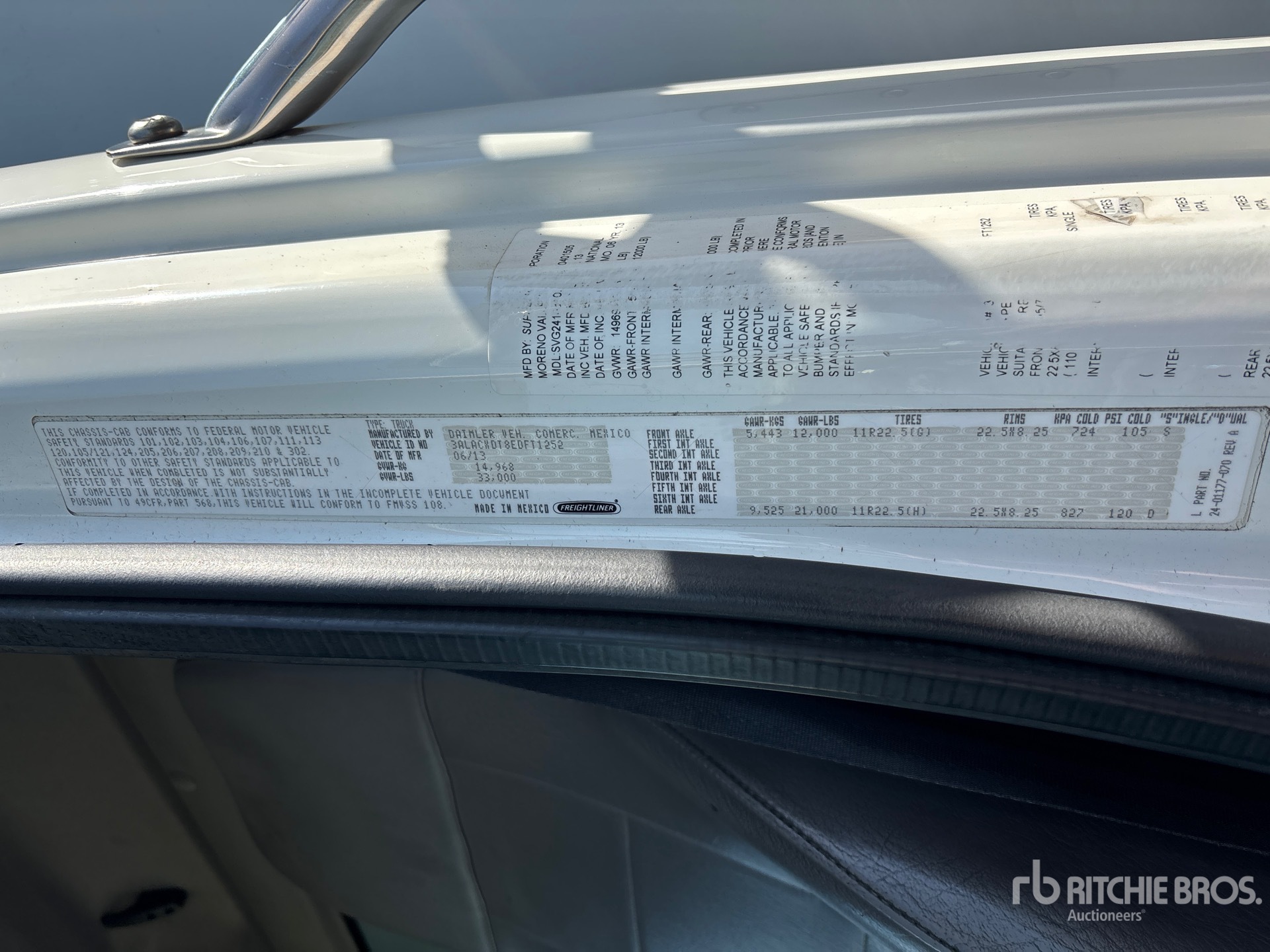 The detailed equipment information is limited in scope, and Ritchie Bros. Auctioneers has not inspected any aspects or components of the equipment other than those expressly set forth herein. Unless expressly stated, we make no representations or warranties, express or implied, concerning the equipment or its components, including without limitation any representations or warranties concerning functionality, conformity or compliance with any safety standard or requirement of any applicable authority or regulatory body, fitness for any particular purpose, or merchantability. You are strongly advised to perform your own detailed inspection of the equipment prior to bidding.