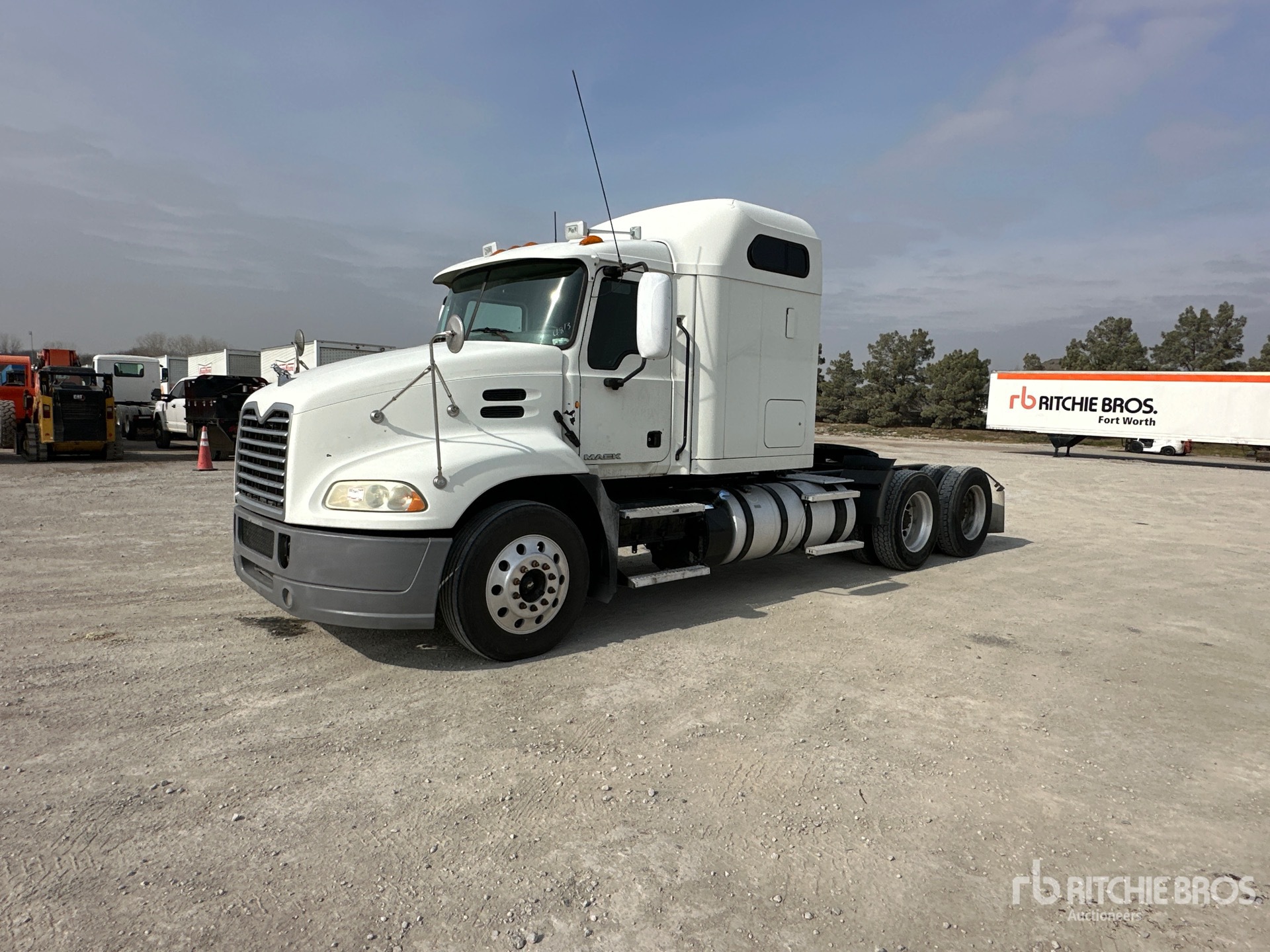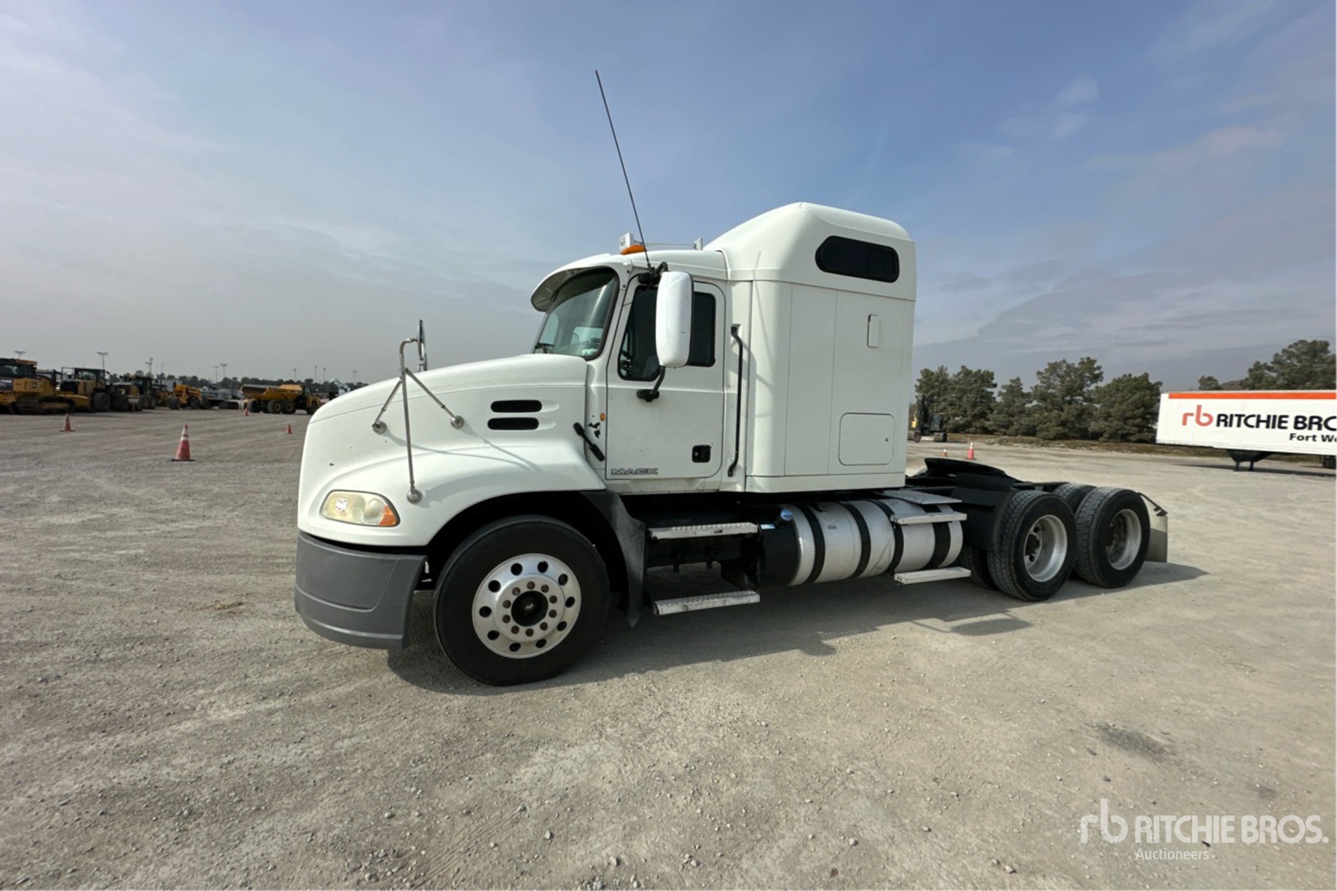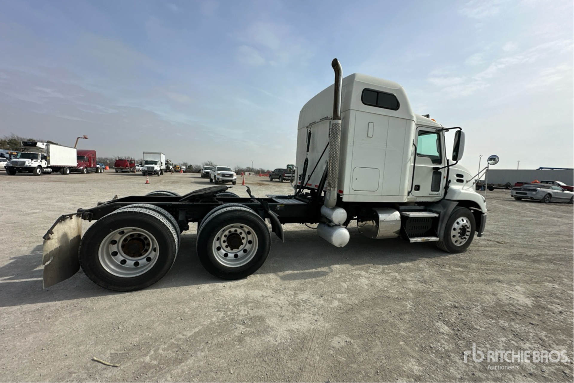 Mack MP7 395 hp Engine, 2013 US EPA Label, 32995 Engine hrs, Eaton Fuller RTLO-16913A 13-Speed Manual Transmission 12000 lb Front Axle, 40000 lb Rears, 52000 lb GVWR, Engine Brake, 60 in Mid Roof Sleeper Cab, 216 in Wheelbase, Air Suspension, Aluminum Wheels, 285/75R24.5 Front Tires, 285/75R24.5 Rear Tires