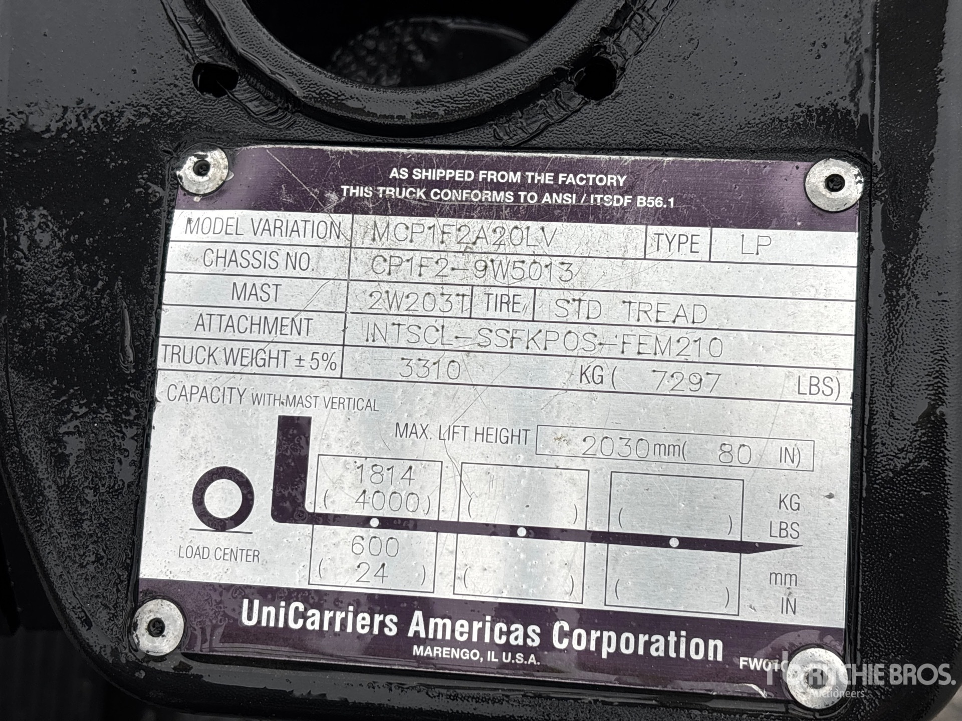 The detailed equipment information is limited in scope, and Ritchie Bros. Auctioneers has not inspected any aspects or components of the equipment other than those expressly set forth herein. Unless expressly stated, we make no representations or warranties, express or implied, concerning the equipment or its components, including without limitation any representations or warranties concerning functionality, conformity or compliance with any safety standard or requirement of any applicable authority or regulatory body, fitness for any particular purpose, or merchantability. You are strongly advised to perform your own detailed inspection of the equipment prior to bidding.