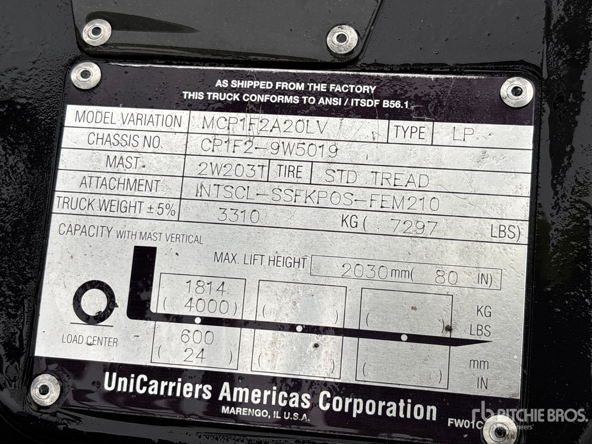 The detailed equipment information is limited in scope, and Ritchie Bros. Auctioneers has not inspected any aspects or components of the equipment other than those expressly set forth herein. Unless expressly stated, we make no representations or warranties, express or implied, concerning the equipment or its components, including without limitation any representations or warranties concerning functionality, conformity or compliance with any safety standard or requirement of any applicable authority or regulatory body, fitness for any particular purpose, or merchantability. You are strongly advised to perform your own detailed inspection of the equipment prior to bidding.