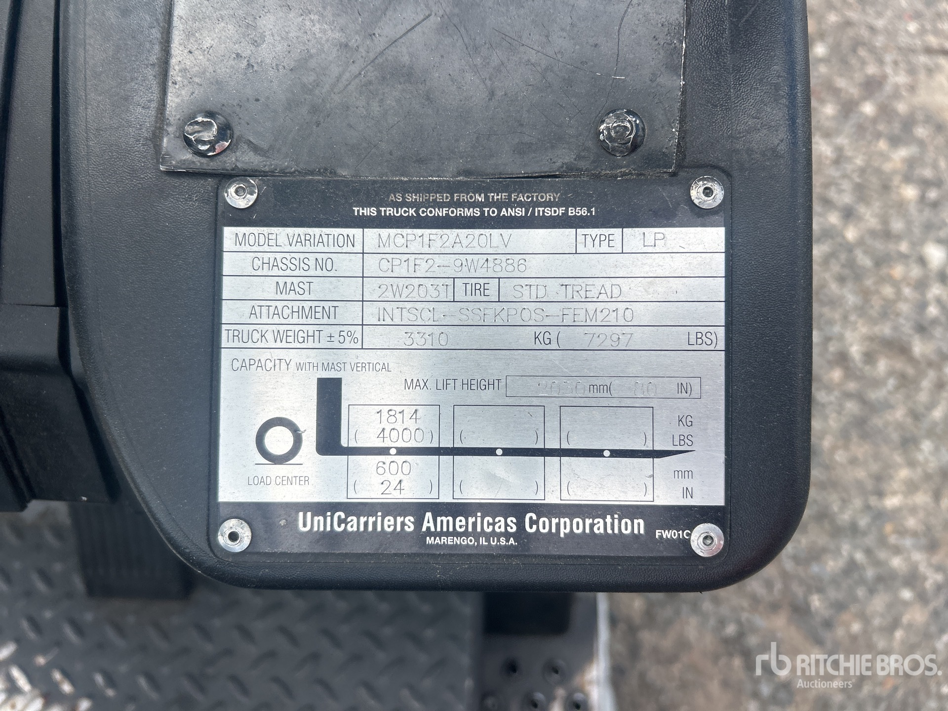 The detailed equipment information is limited in scope, and Ritchie Bros. Auctioneers has not inspected any aspects or components of the equipment other than those expressly set forth herein. Unless expressly stated, we make no representations or warranties, express or implied, concerning the equipment or its components, including without limitation any representations or warranties concerning functionality, conformity or compliance with any safety standard or requirement of any applicable authority or regulatory body, fitness for any particular purpose, or merchantability. You are strongly advised to perform your own detailed inspection of the equipment prior to bidding.
