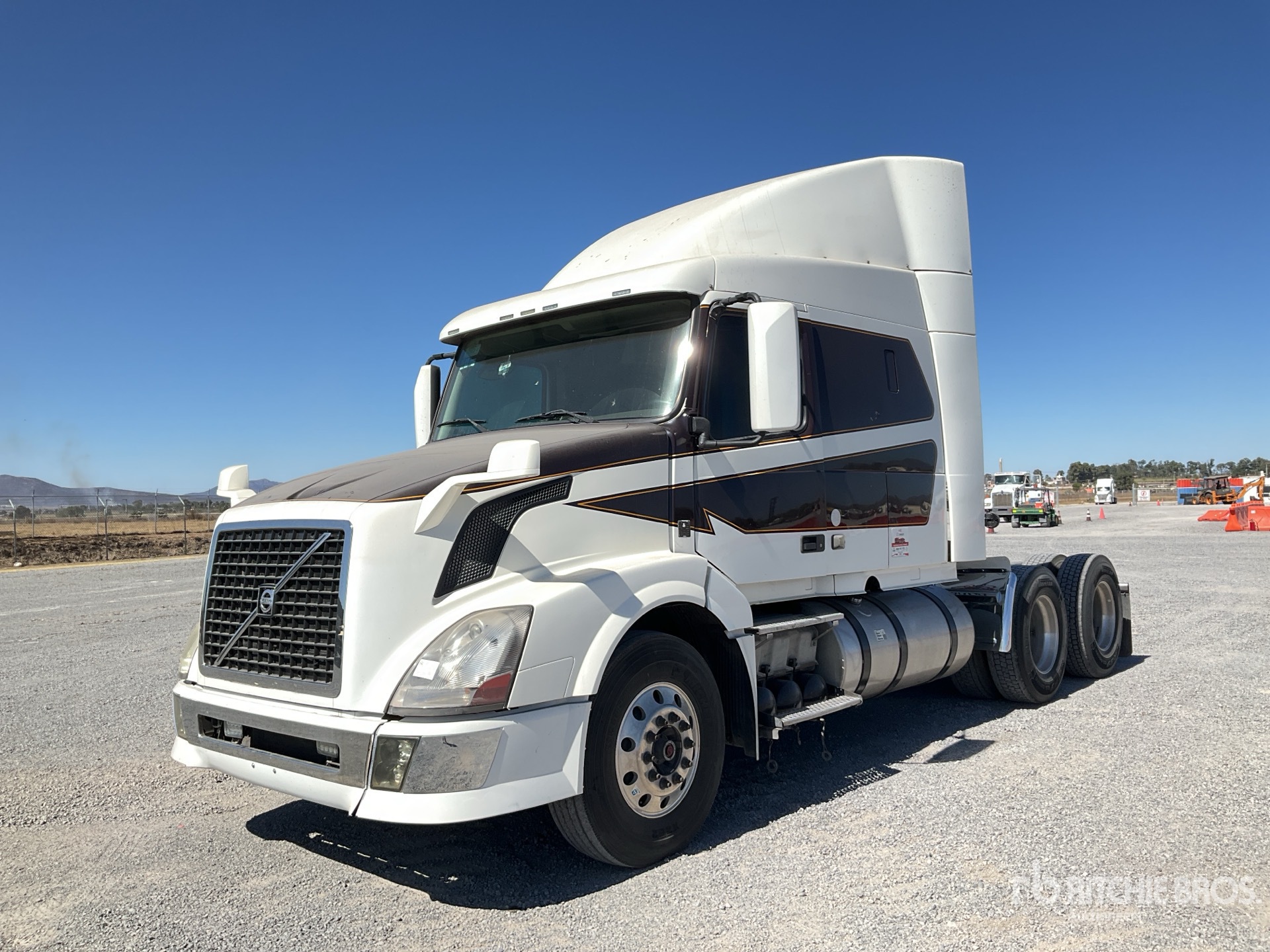 Volvo D13 500 hp Engine, 23359 Engine hrs, Eaton Fuller RTLO-18918B 18-Speed Manual Transmission, 13200 lb Front Axle, Meritor Drive Axles, 4.30:1 Axle Ratio, 46000 lb Rears, Exhaust Brake, 61 in Mid Roof Sleeper Cab, 202 in Wheelbase, Air Suspension, Aluminum Wheels, 11R22.5, Air Sliding 5th Wheel, Dual Fuel Tanks, / Motor Volvo D13 500 hp, 23359 Horas de Motor, Transmision Manual Eaton Fuller RTLO-18918B 18 Velocidades, Eje Frontal 13200 lb, Ejes Traseros Meritor, Relacion de Eje 4.30:1, Traseros 46000 lb, Freno de Escape, Dormitorio Perfil Medio 61 in, Distancia entre Ejes 202 in, Suspension de Aire, Rines de Aluminio, Llantas 11R22.5, Quinta Rueda Deslizante de Aire, Tanques Duales de Combustible