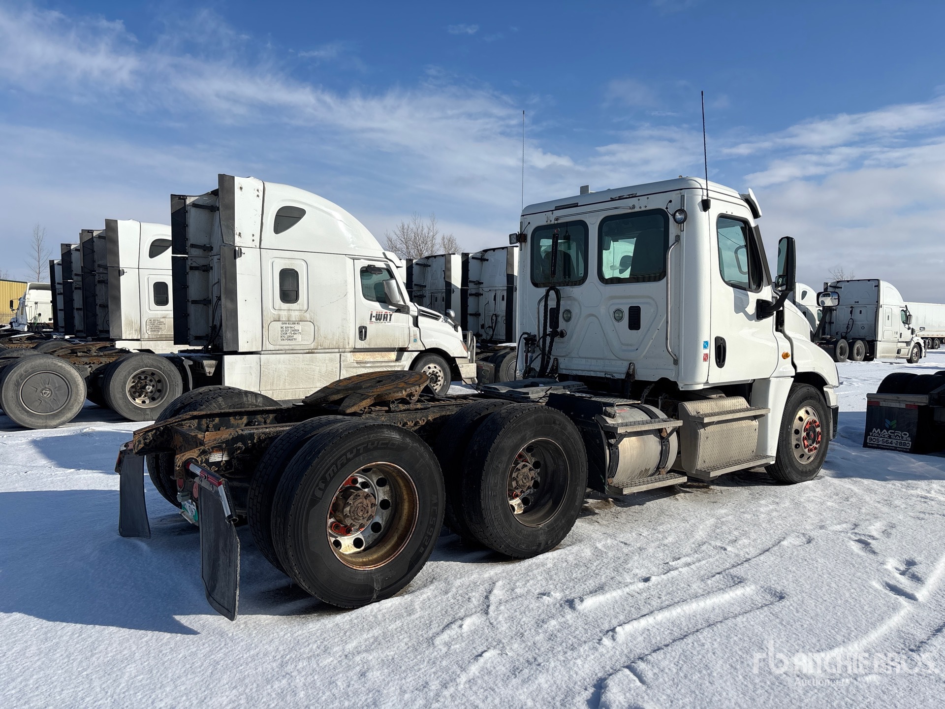 Detroit DD15 455 hp Engine, Eaton Fuller FO-18E313A-MHP Automatic Transmission, 12000 lb Front Axle, 40000 lb Rears, 52000 lb GVWR, Engine Brake, Differential Lock, 178 in Wheelbase, Air Suspension, Aluminum Wheels, 11R22.5, Air Sliding 5th Wheel, Dual Fuel Tanks