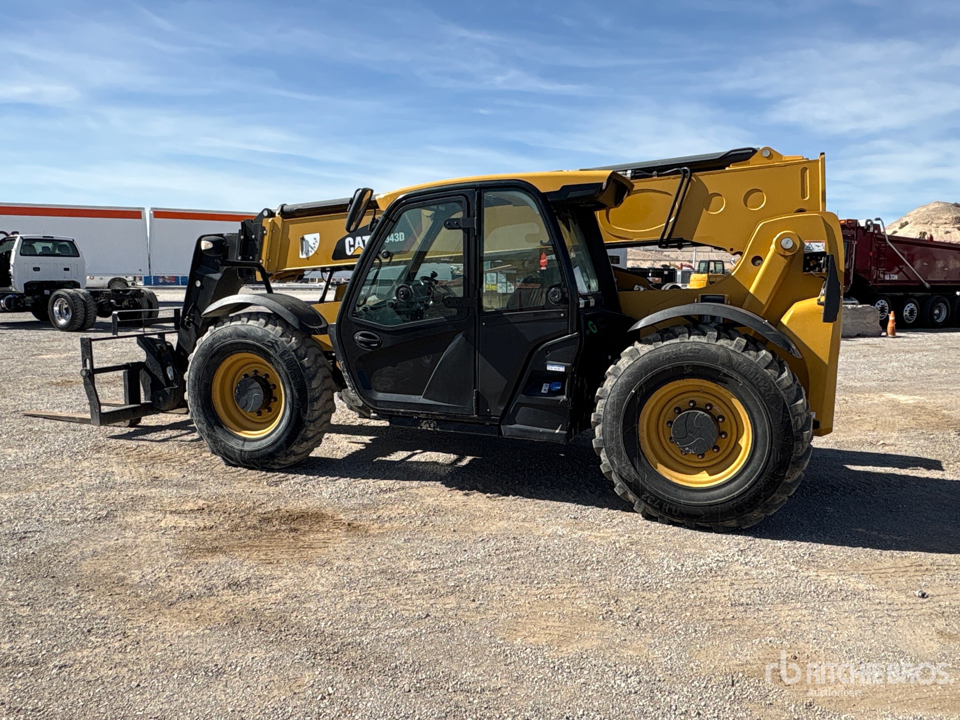 Enclosed Cab, Air Conditioner, Rear View Camera, Load Moment Indicator, 43 ft Max Lift Height, 9000 lb Max Lift Capacity, 2015 US EPA Label, Requires Diesel Exhaust Fluid, 60 in Forks, Hydraulic Coupler, Frame Leveling, Auxiliary Hydraulic Plumbing, 14.00-24 Tires