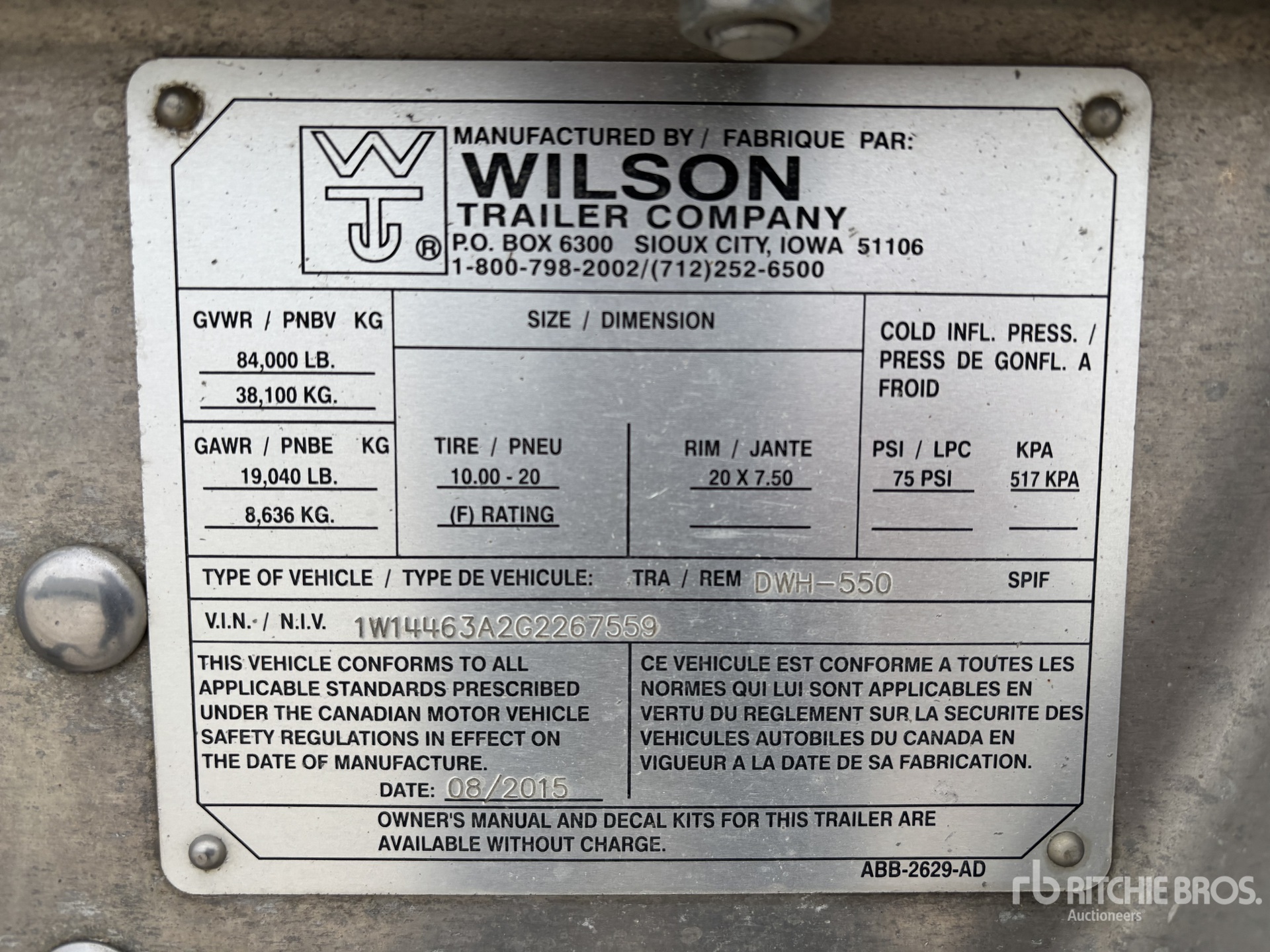 The detailed equipment information is limited in scope, and Ritchie Bros. Auctioneers has not inspected any aspects or components of the equipment other than those expressly set forth herein. Unless expressly stated, we make no representations or warranties, express or implied, concerning the equipment or its components, including without limitation any representations or warranties concerning functionality, conformity or compliance with any safety standard or requirement of any applicable authority or regulatory body, fitness for any particular purpose, or merchantability. You are strongly advised to perform your own detailed inspection of the equipment prior to bidding.
