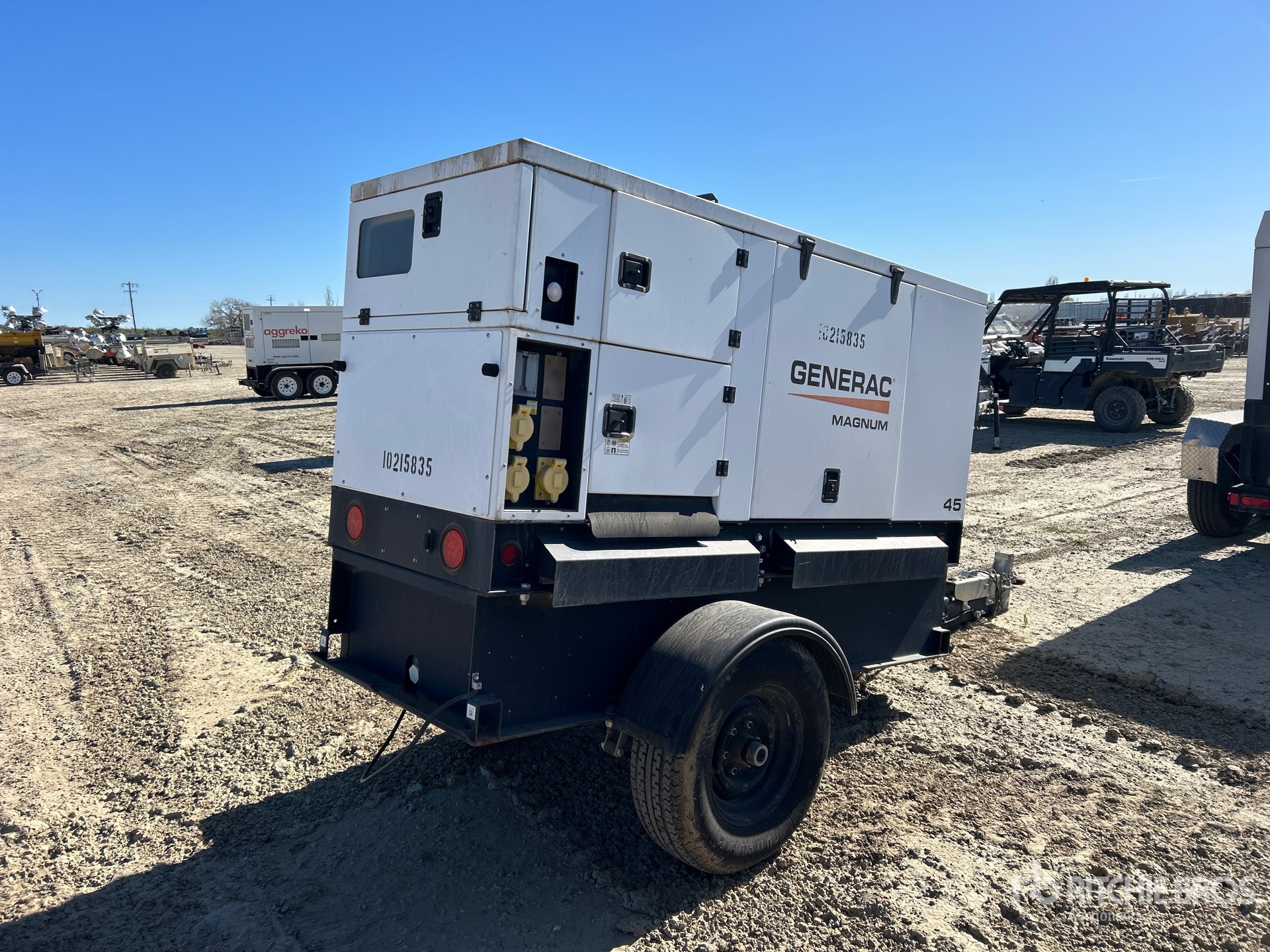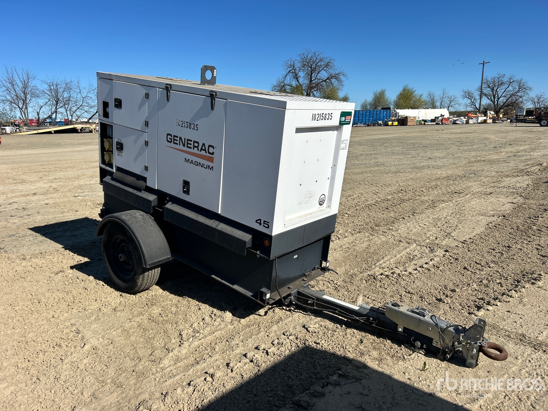 2014 US EPA Label, Isuzu BP-4LE2X 49 kW Diesel Engine, 47 kVA/38 kW Rated 3 Phase Output, 480 V / 208 V Rated Voltage, 33 kVA,/33 kW, Rated Single Phase Output, 240 V Rated Voltage, 120 V Receptacles, Lunette Ring Carrier Trailer, Surge Brakes