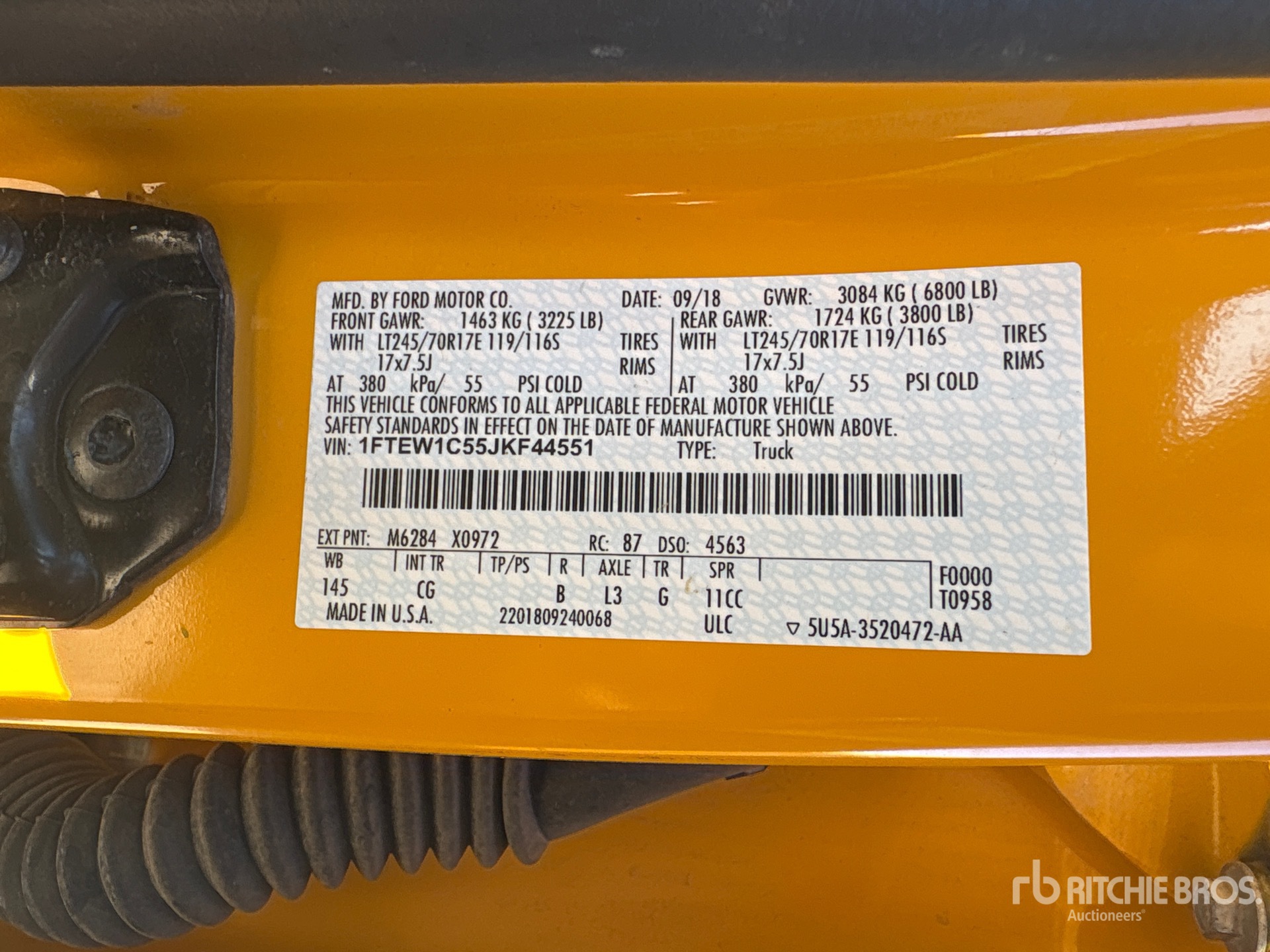Located in Lane 32 Spot 4, 5.0 L V8 Gasoline Engine, 2018 US EPA Label, Automatic Transmission, Air Conditioner, Power Windows, Protech Tool Box, Spray-On Bed Liner, 6800 lb GVWR, 265/70R17 Tires, 6 ft Bed