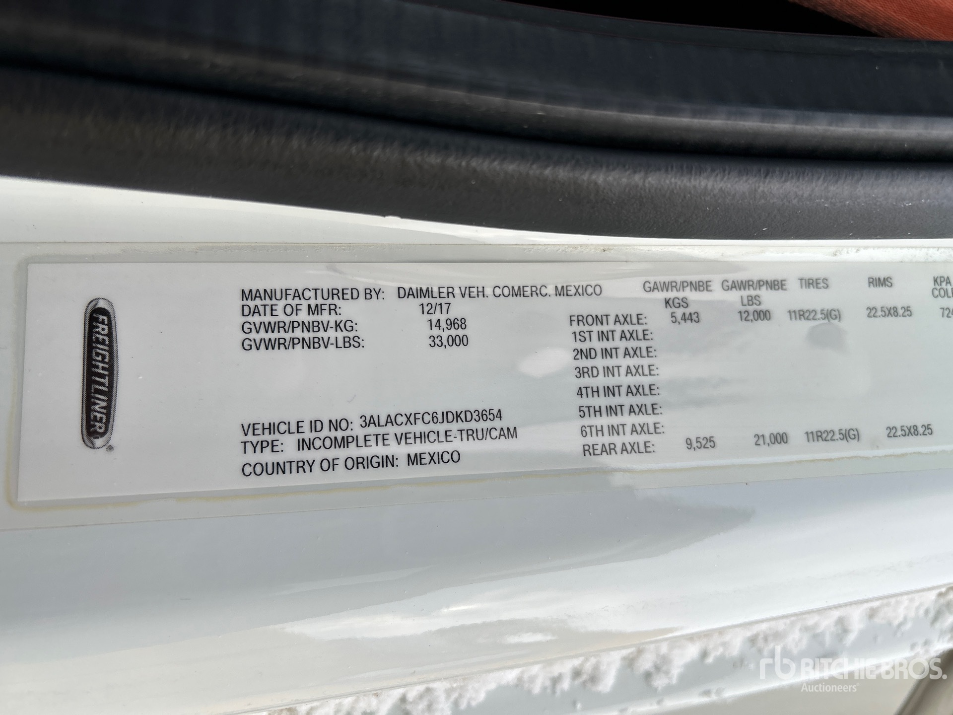 The detailed equipment information is limited in scope, and Ritchie Bros. Auctioneers has not inspected any aspects or components of the equipment other than those expressly set forth herein. Unless expressly stated, we make no representations or warranties, express or implied, concerning the equipment or its components, including without limitation any representations or warranties concerning functionality, conformity or compliance with any safety standard or requirement of any applicable authority or regulatory body, fitness for any particular purpose, or merchantability. You are strongly advised to perform your own detailed inspection of the equipment prior to bidding.