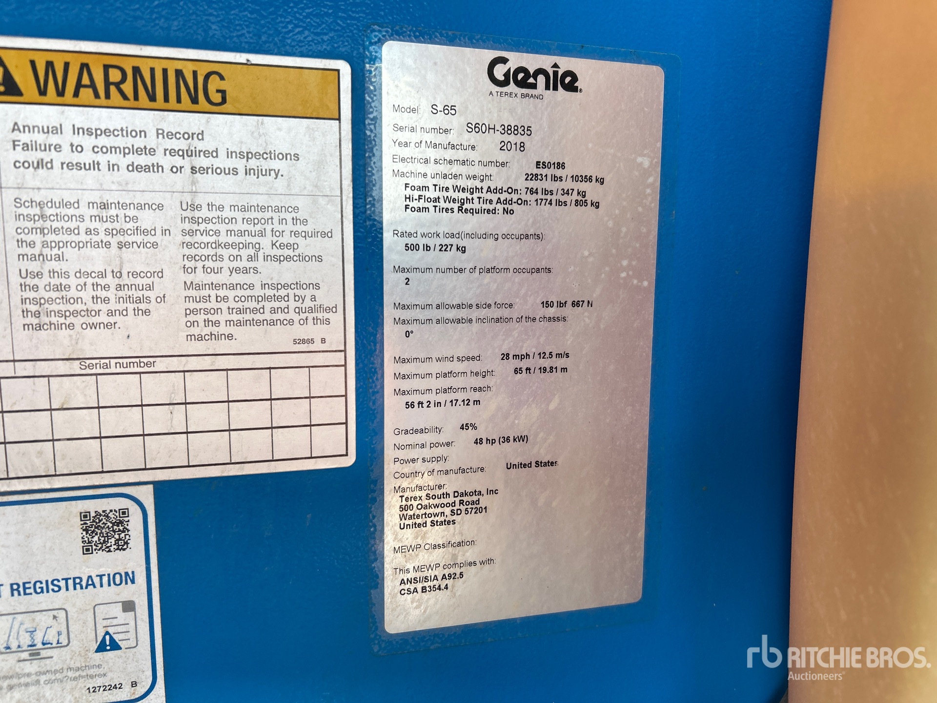 The detailed equipment information is limited in scope, and Ritchie Bros. Auctioneers has not inspected any aspects or components of the equipment other than those expressly set forth herein. Unless expressly stated, we make no representations or warranties, express or implied, concerning the equipment or its components, including without limitation any representations or warranties concerning functionality, conformity or compliance with any safety standard or requirement of any applicable authority or regulatory body, fitness for any particular purpose, or merchantability. You are strongly advised to perform your own detailed inspection of the equipment prior to bidding.