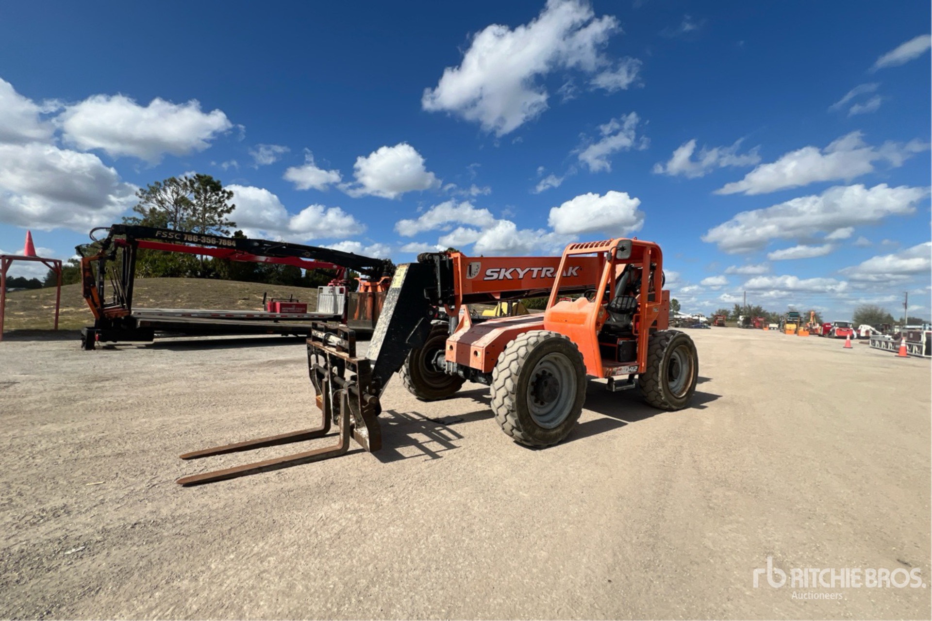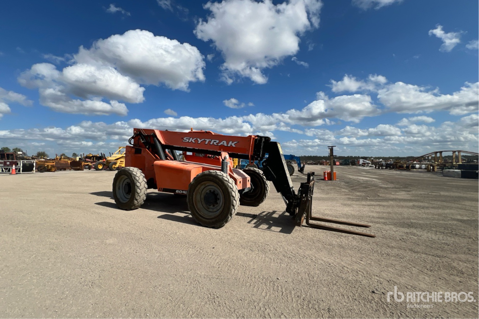 Located in Lane 17 Spot 211, Open Operator Station, 42 ft Max Lift Height, 6000 lb Max Lift Capacity, 48 in Forks, Manual Coupler, Frame Leveling, Auxiliary Hydraulic Plumbing, 370/75-28 Tires