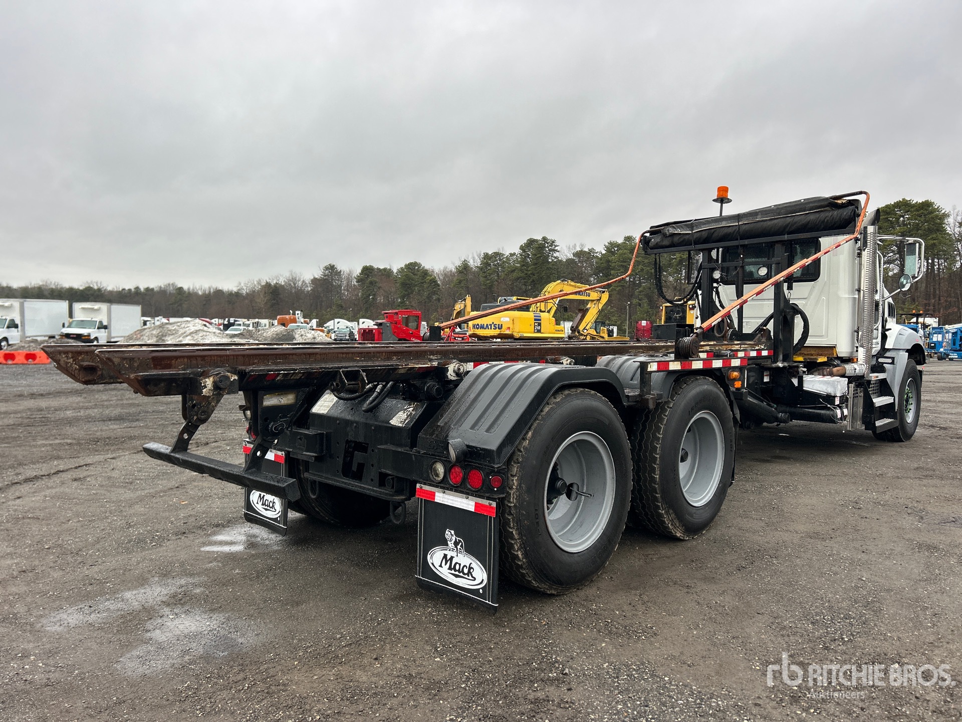 Located in Lane 45 Spot 3, Mack MP8 6 Cylinder 12.8 L Diesel 425 hp Engine, 2017 US EPA Label, Requires Diesel Exhaust Fluid, 8542 Engine hrs, Allison Automatic Transmission, 20000 lb Front Axle, 65000 lb Rears, 85000 lb GVWR, 425/65R22.5 Front Tires, 12R24.5 Rear Tires, Dual Steering Boxes, Camelback Spring Suspension, 263 in Wheelbase, PTO, 2017 Galbreath Roll-Off Body, 23 ft 6 in Hoist, Winch