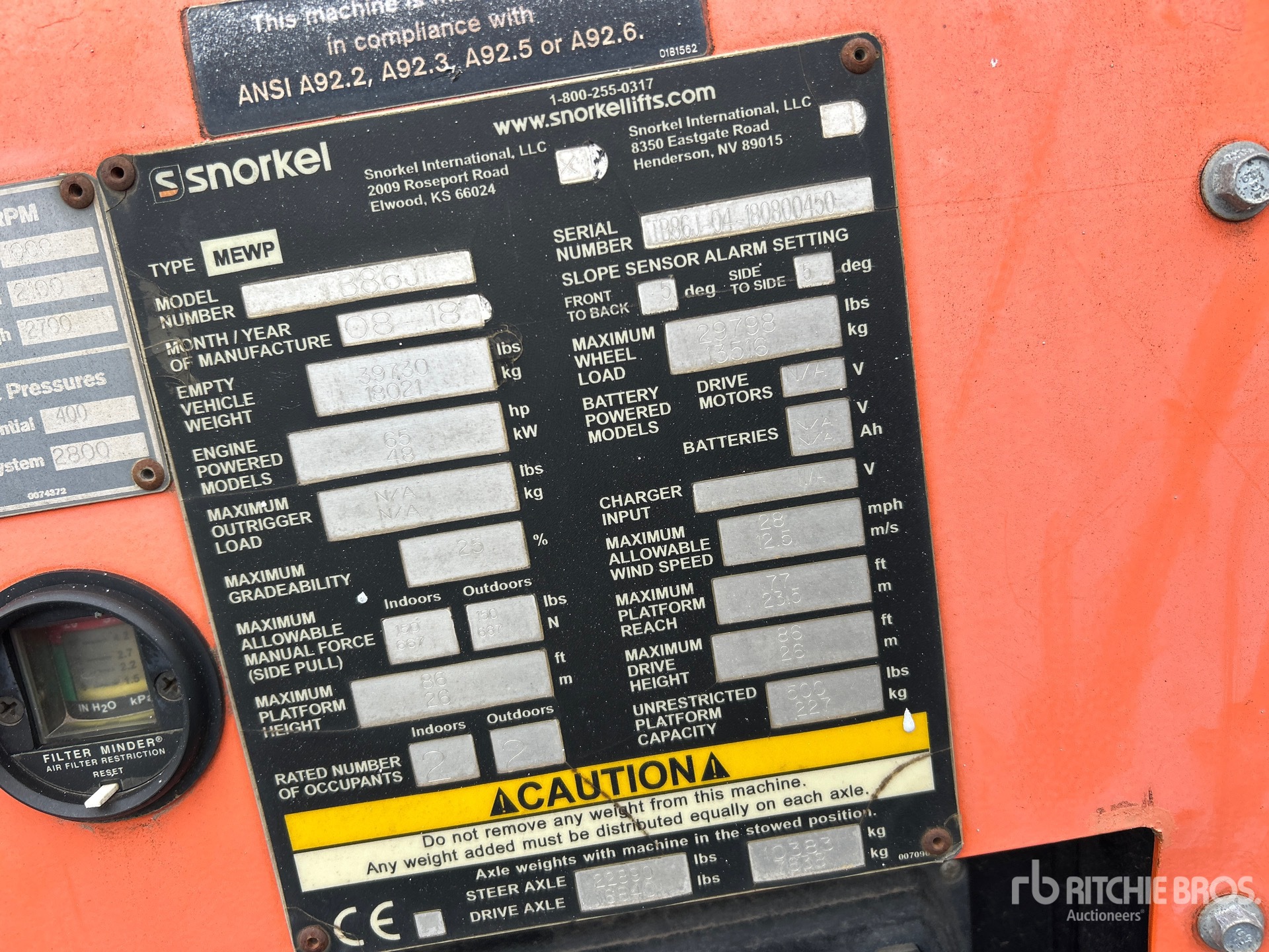The detailed equipment information is limited in scope, and Ritchie Bros. Auctioneers has not inspected any aspects or components of the equipment other than those expressly set forth herein. Unless expressly stated, we make no representations or warranties, express or implied, concerning the equipment or its components, including without limitation any representations or warranties concerning functionality, conformity or compliance with any safety standard or requirement of any applicable authority or regulatory body, fitness for any particular purpose, or merchantability. You are strongly advised to perform your own detailed inspection of the equipment prior to bidding.