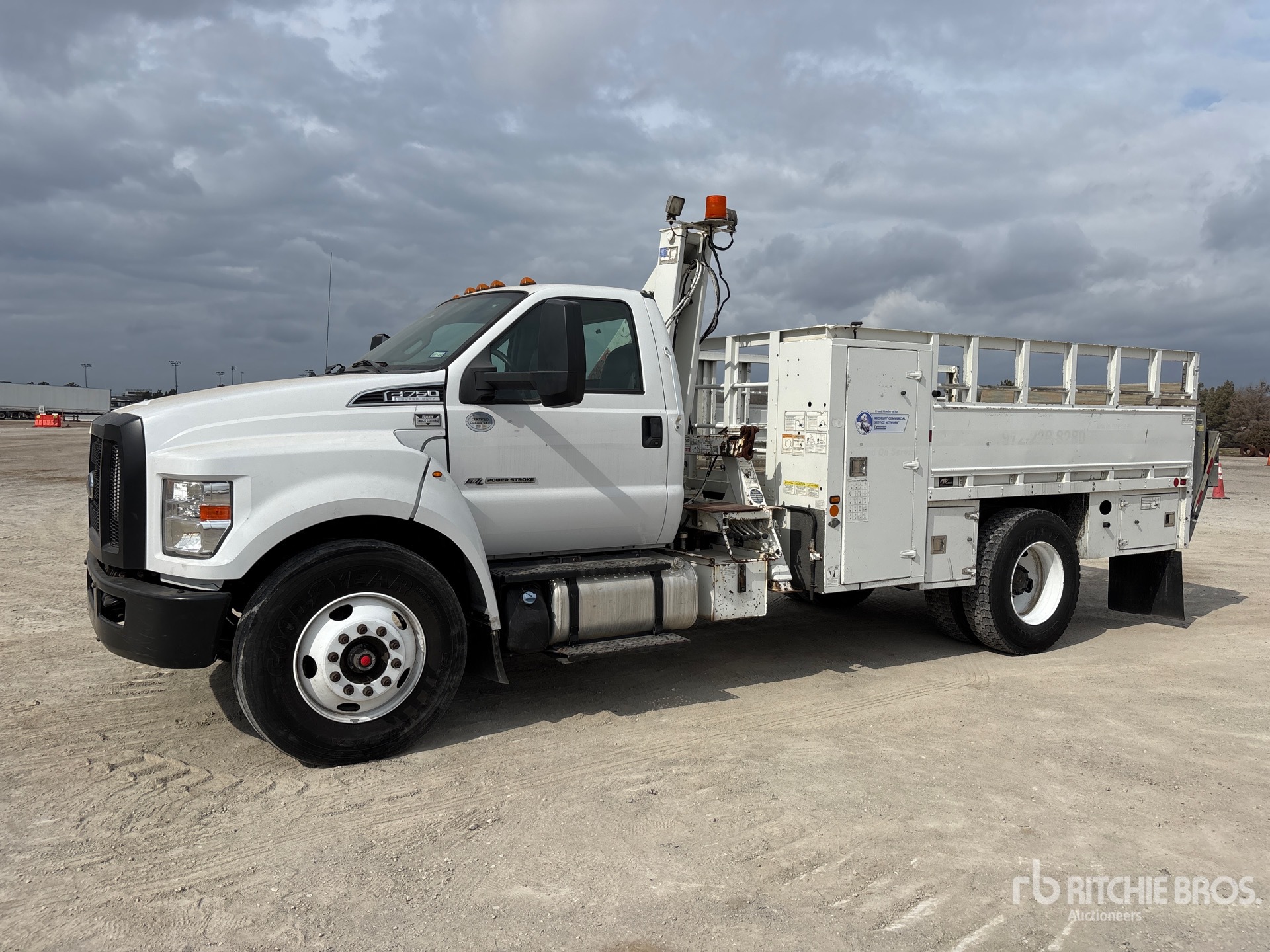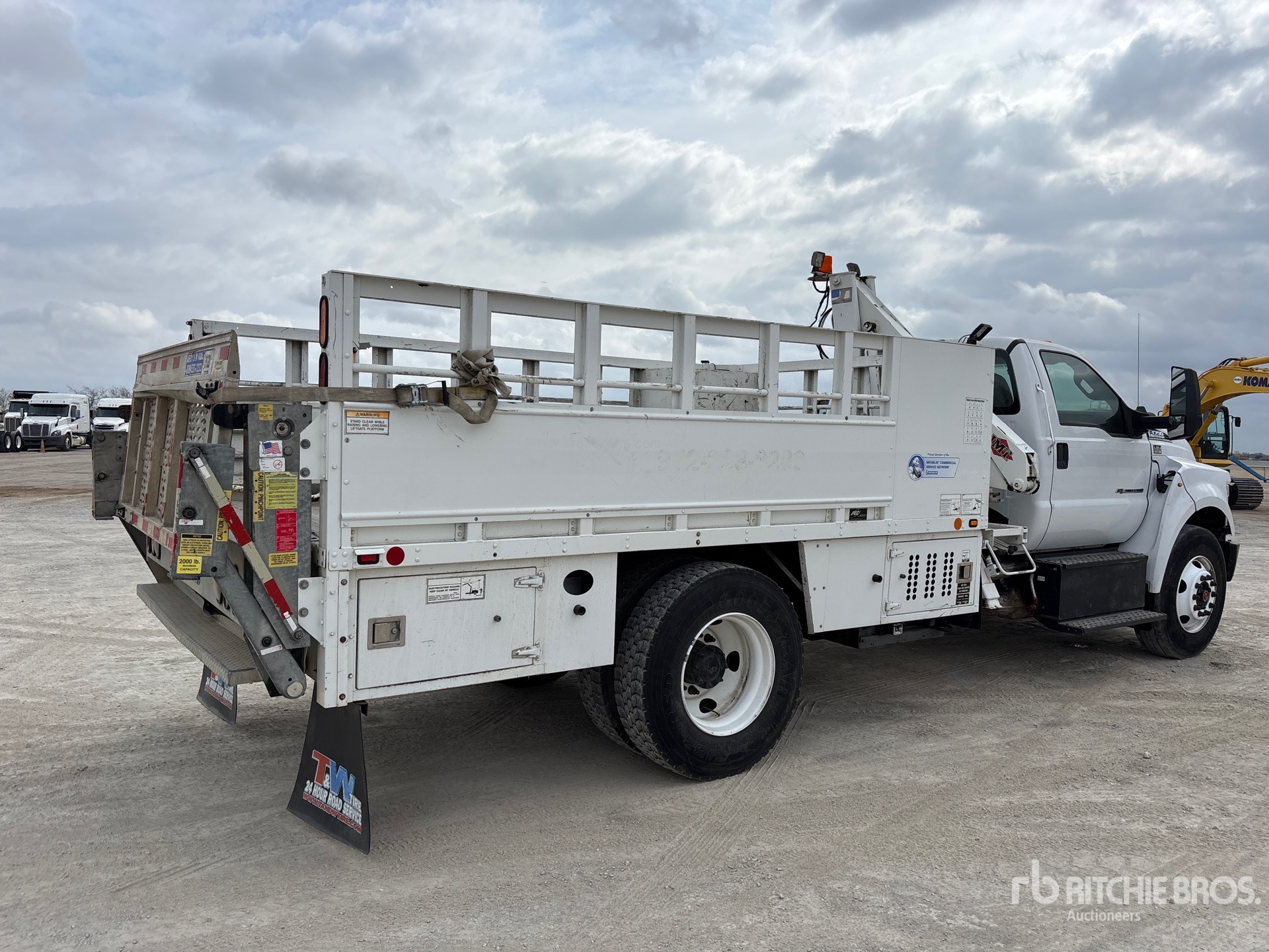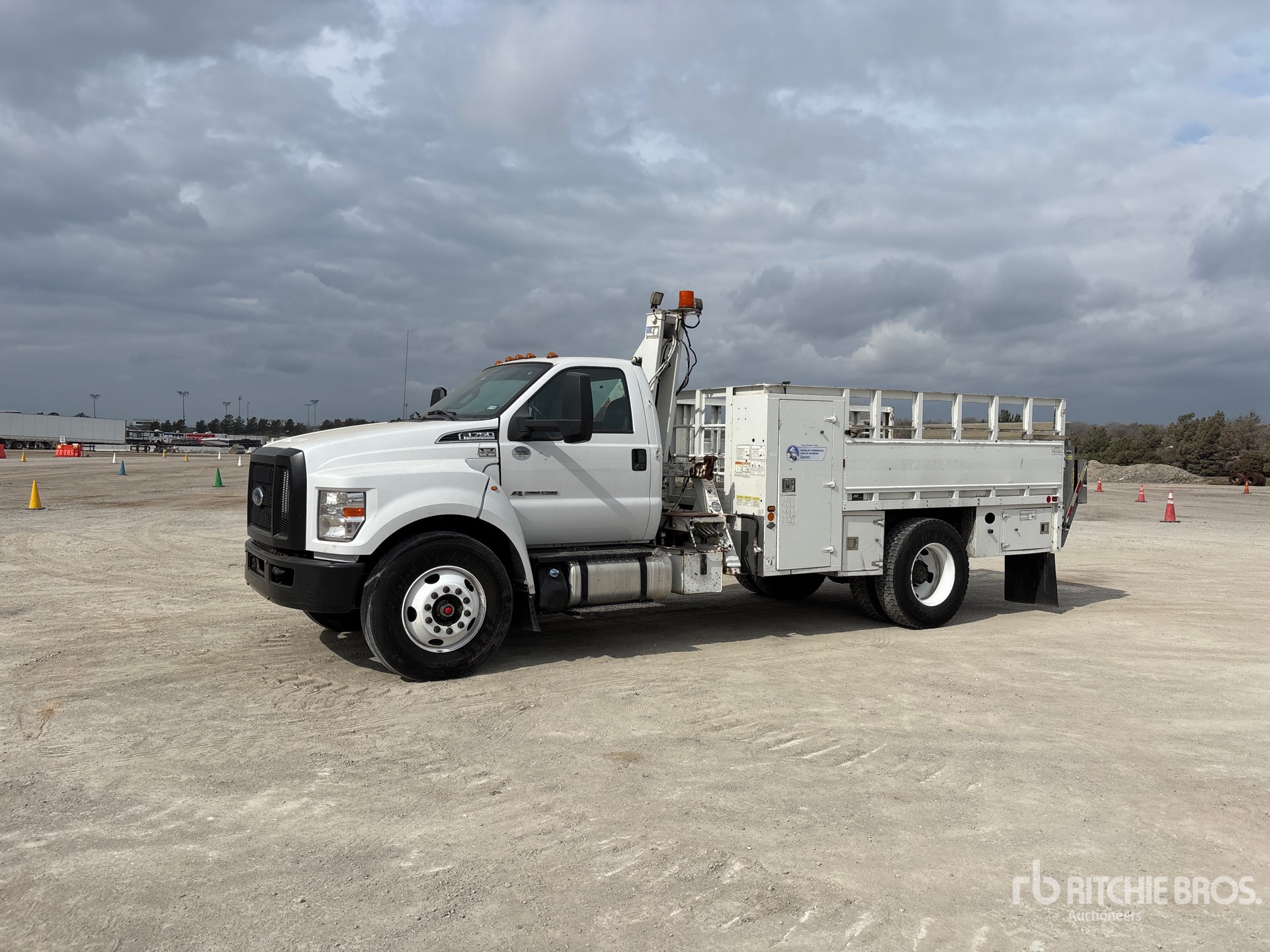 Ford 6.7 L Diesel Engine, 2019 US EPA Label, Requires Diesel Exhaust Fluid, 3331 Engine hrs, Automatic Transmission, 10000 lb Front Axle, 21000 lb Rears, 25999 lb GVWR, 11R22.5, Spring Suspension, 186 in Wheelbase, PTO, 13 ft Body, Hydraulic Stabilizers, Hydraulic Lift Gate, IMT 3500 3500 lb 2 Section Hydraulic Crane, Hydraulic Air Compressor