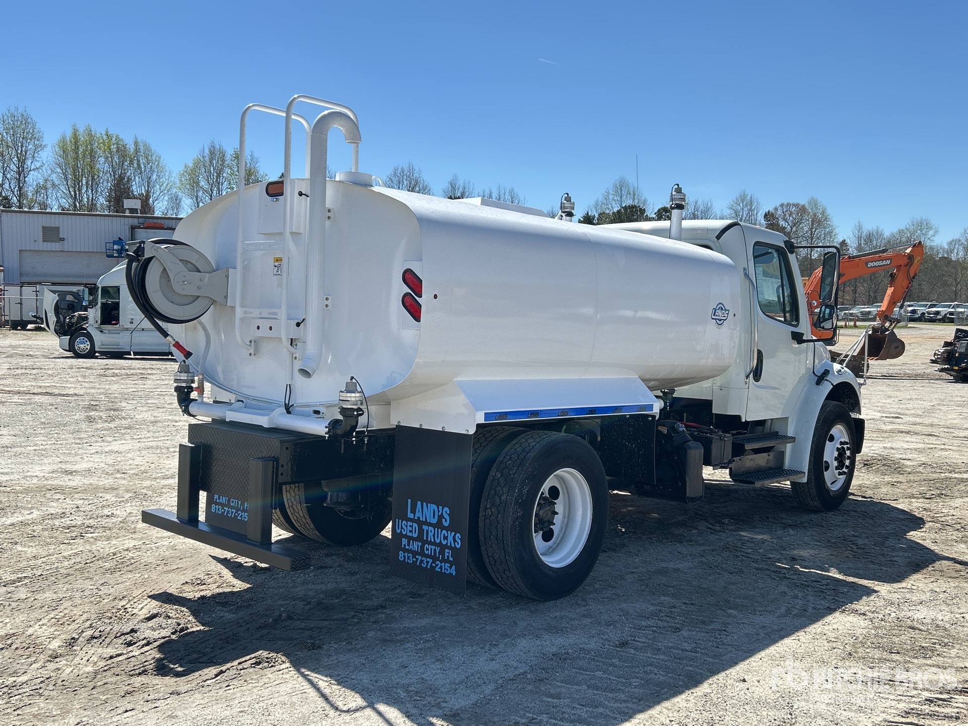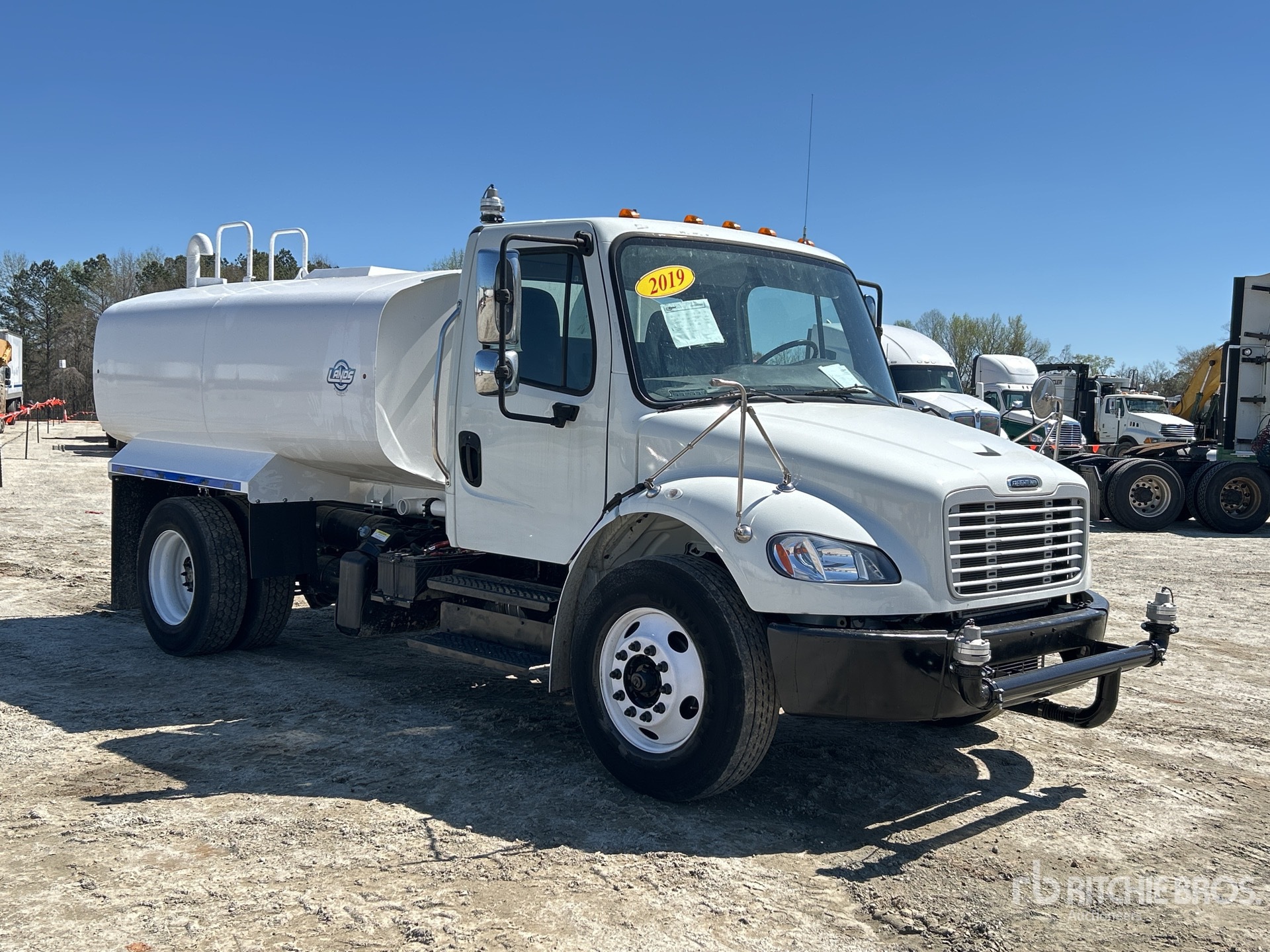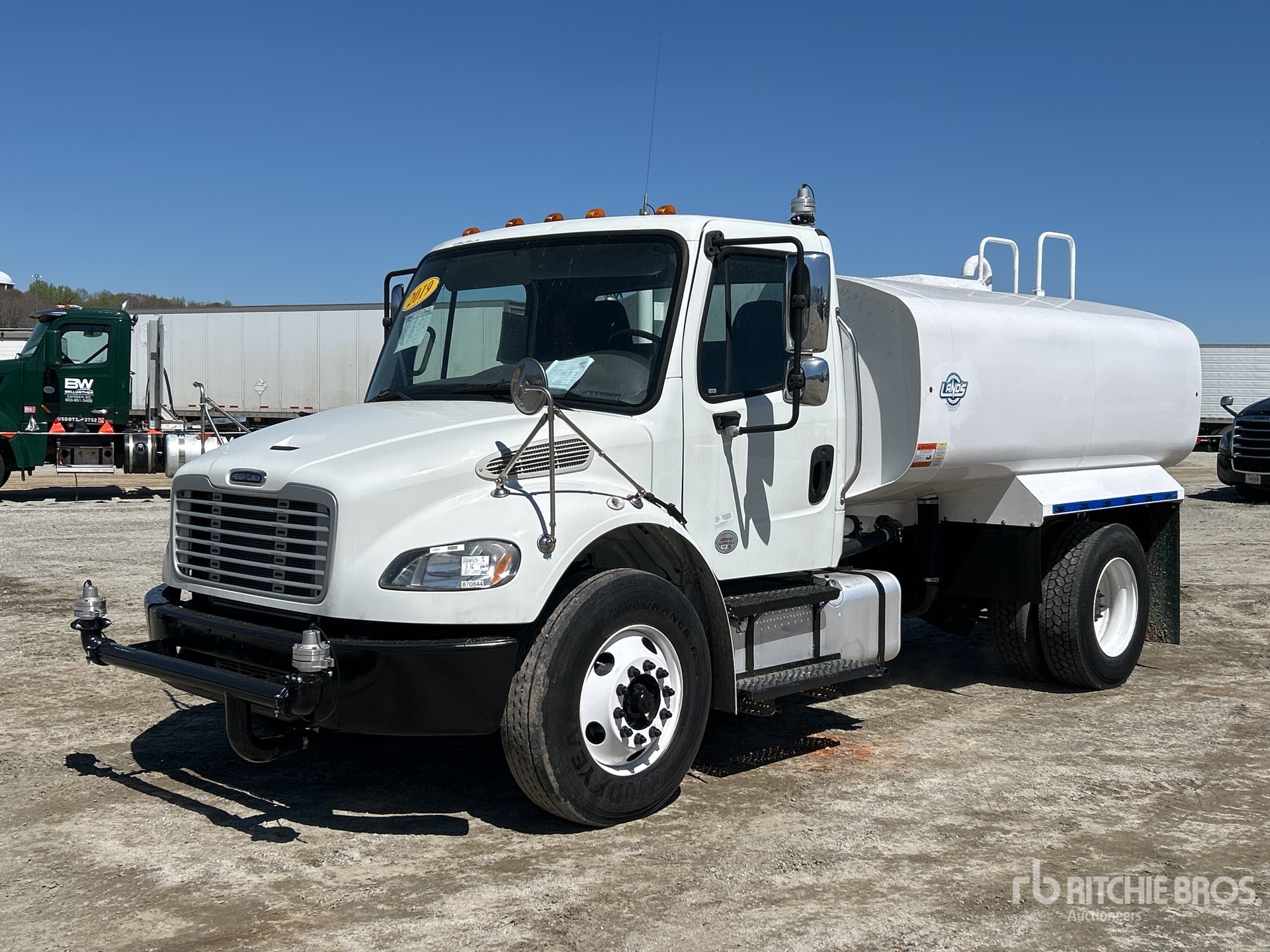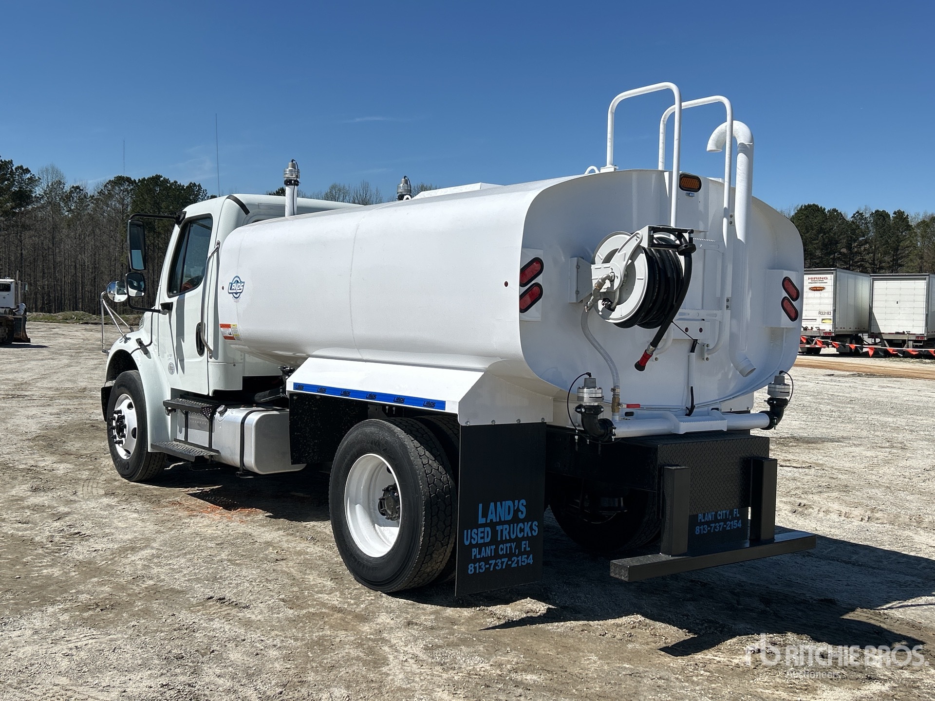 Cummins B6.7 6 Cylinder 6.7 L Diesel 260 hp Engine, 2018 US EPA Label, Requires Diesel Exhaust Fluid, 7088.7 Engine hrs, Automatic Transmission, 12000 lb Front Axle, 21000 lb Rears, 33000 lb GVWR, 295/75R22.5 Front Tires, 295/75R22.5 Rear Tires, Airliner Air Ride Suspension, 164 in Wheelbase, PTO, Lands Steel Tank, CNV Pump Manufacturer PTO Driven Pump, 5 ft 6 in, Spray Bar, Hose Reel, Front Spray, Rear Spray, Side Spray