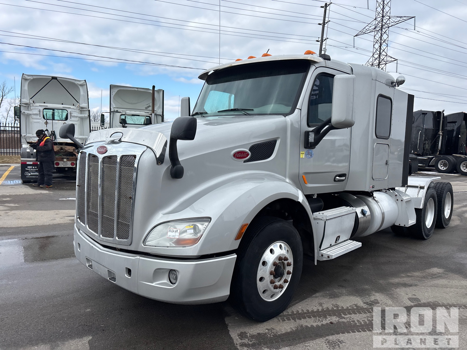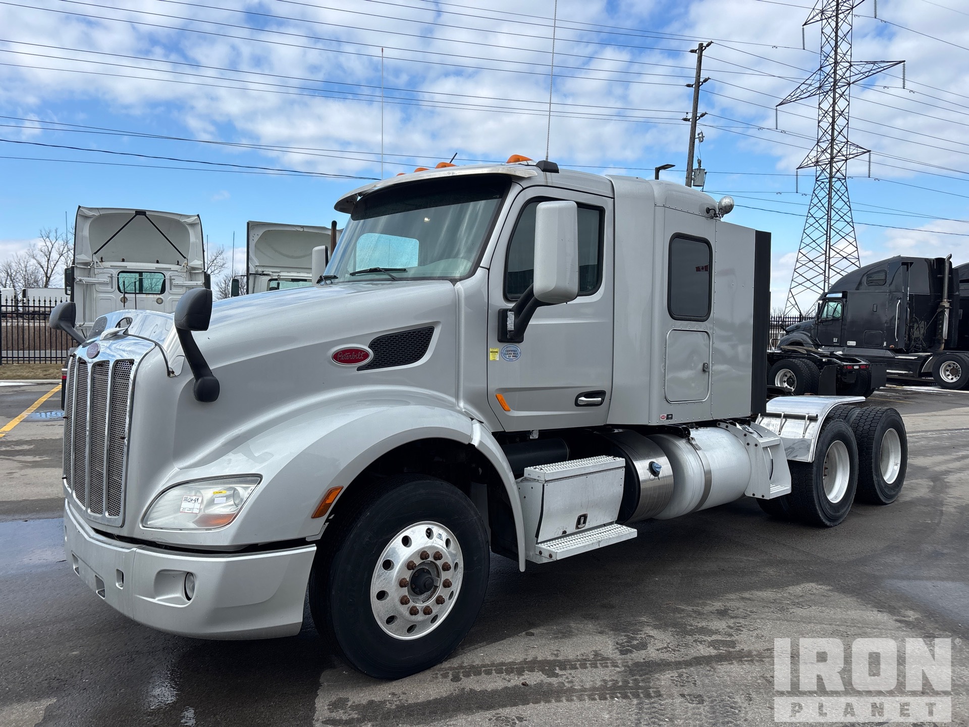 Paccar MX-13 380 kW Engine, 2018 US EPA Label, 14708 Engine hrs, Eaton Fuller 18-Speed Manual Transmission, 14600 lb Front Axle, 46000 lb Rears, 60600 lb GVWR, Engine Brake, Double Differential Locks, 44 in Mid Roof Sleeper Cab, 224 in Wheelbase, Air Suspension, Aluminum Wheels, 11R22.5, Air Sliding 5th Wheel, Dual Fuel Tanks