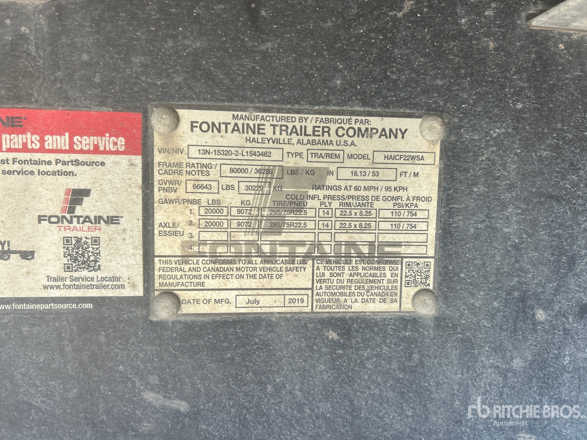 Air Ride Suspension, 102 in Deck Width, Aluminum w/Wood Strips Flooring, 295/75R22.5 Tires, 66643 lb GVWR