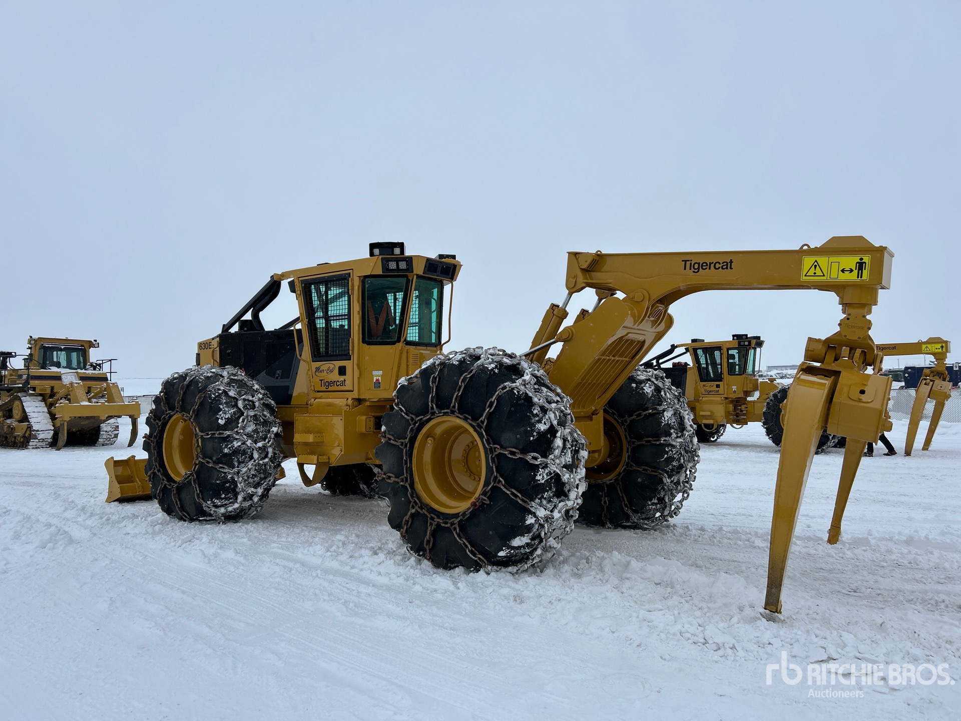 Air Conditioner, Joystick Steering, Air Ride Seat, Sweeps, Screens, Two-Position Station, Engine Coolant Heater, Blade, Tigercat Grapple, Double Arch, 35.5x32 Tires w/2 Pairs of Chains, Floatation Tires, Complete-Retirement-Dispersal-for-Mur-Cal-Services-Ltd