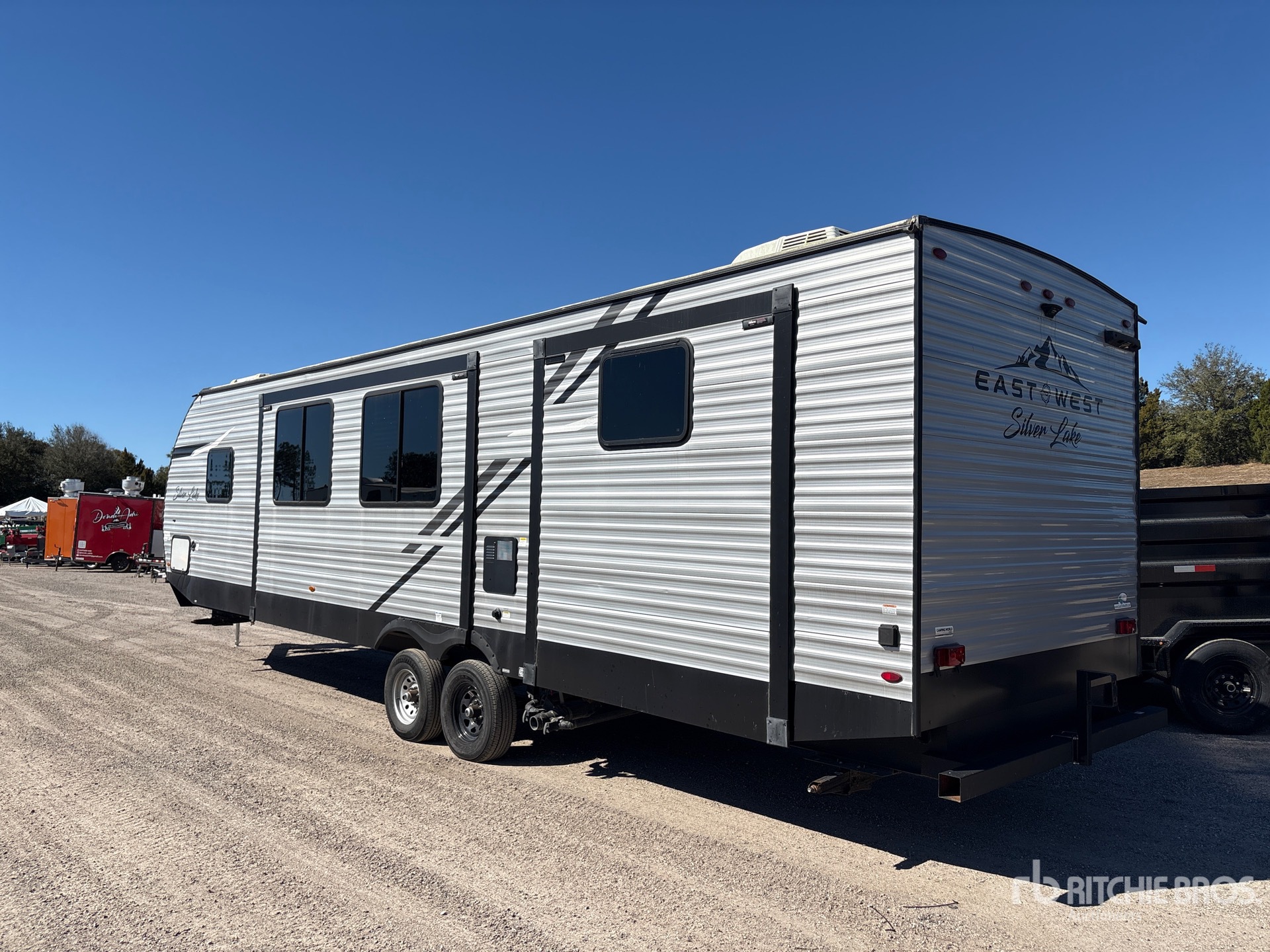 Sleeps 8 People, 9093 lb GVWR, 3 Slide Outs, Outdoor Kitchen, Power Awning, Bumper Pull, Spring Suspension, Electric Brakes, 225/75R15 Tires