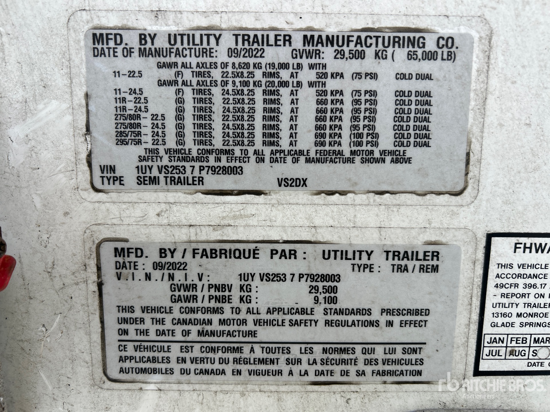 Air Ride Sliding Suspension, Side Skirts, Hardwood Floor, Swing Door, 11R22.5 Tires, 65000 lb GVWR