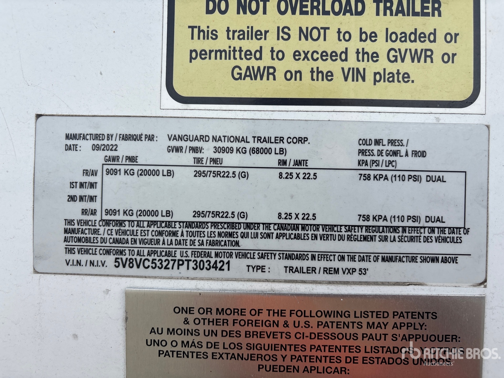 Air Ride Sliding Suspension, Side Skirts, Hardwood Floor, Swing Door, 295/75R22.5 Tires 68000 lb GVWR