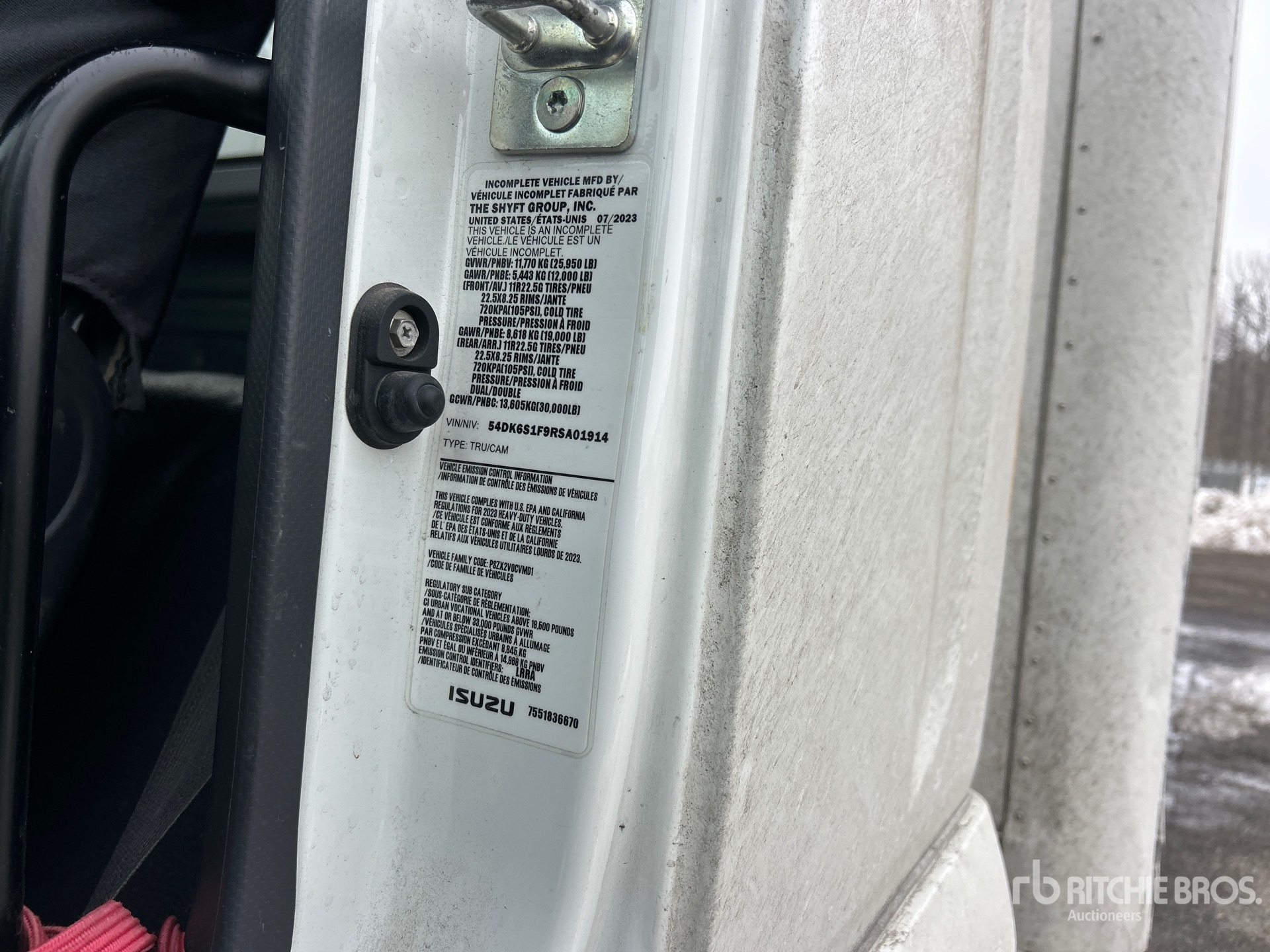 Cummins B6.7 6 Cylinder 6.7 L Diesel 260 hp Engine, 2023 US EPA Label, 6311 Engine hrs, Automatic Transmission, 12000 lb Front Axle, 19000 lb Rears, 25950 lb GVWR, 11R22.5, Air Ride Suspension, 236 in Wheelbase, Continental 28 ft x 102 in Wide x 107 in High Body, Liftgate